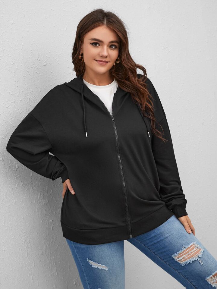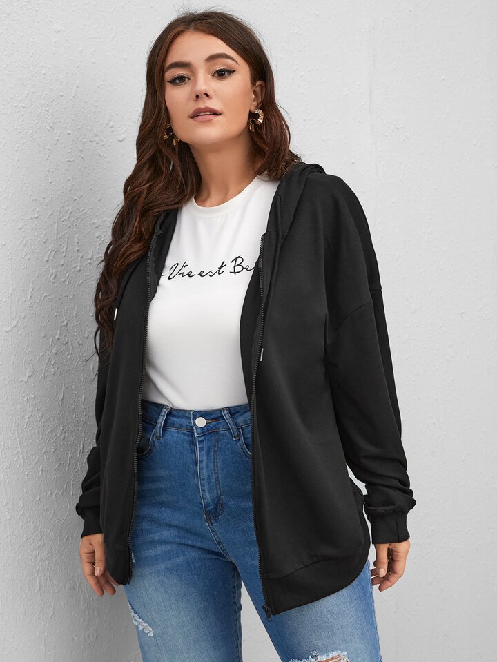 قميص ثقيل مقنع بسستة بلون موحد مقاس كبير