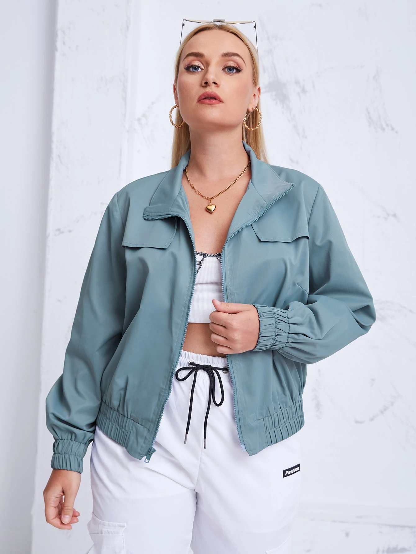جاكيت بسستة من اعلى لاسفل بلون موحد مقاس كبير