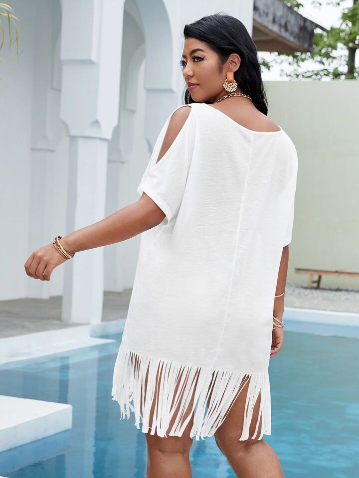 فستان بحافة هدب وبجرافيك شعار باكمام بفتحة مقاس كبير