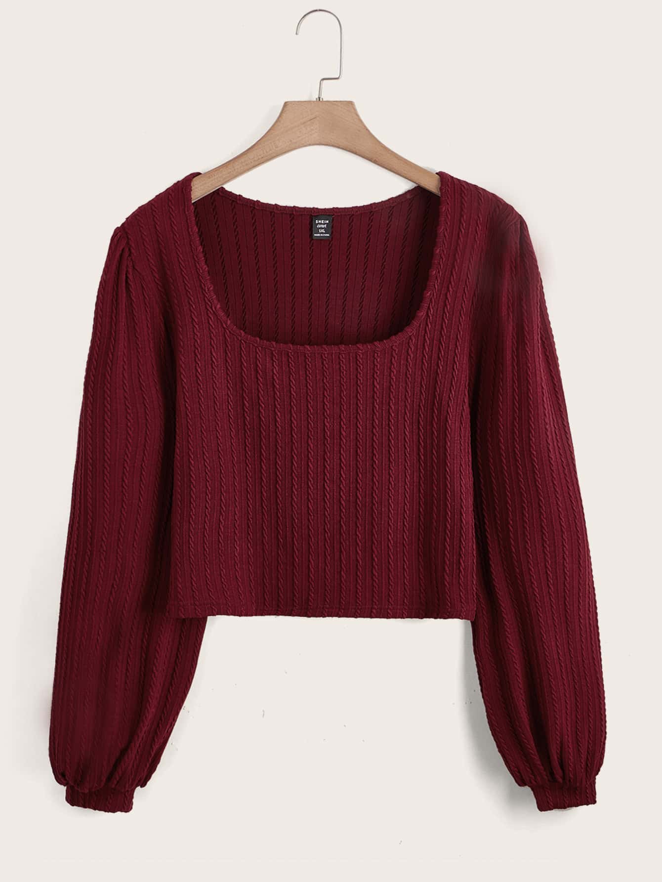 تي شيرت تي شيرت ذو كم بشوب وياقة مربعة للمقاسات الكبيرة