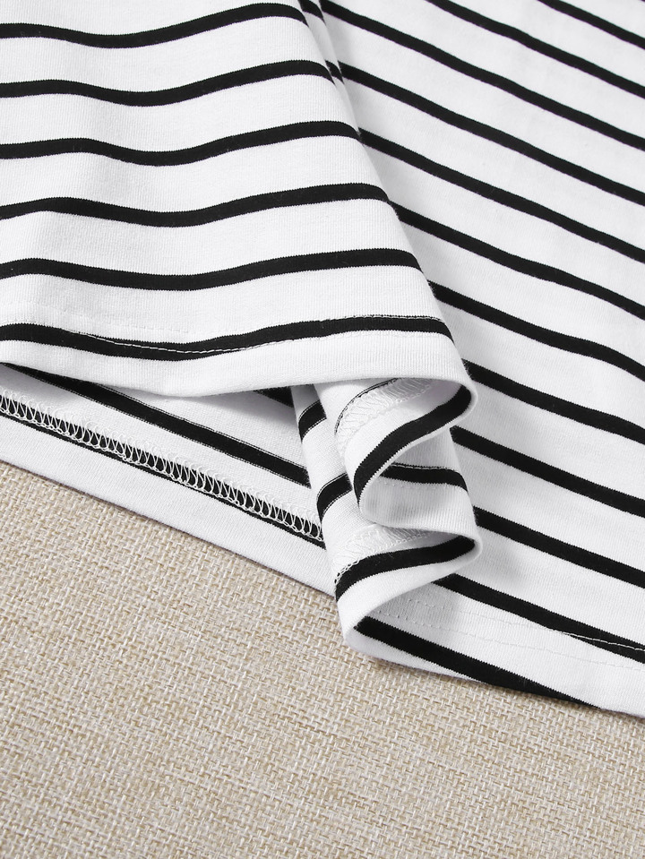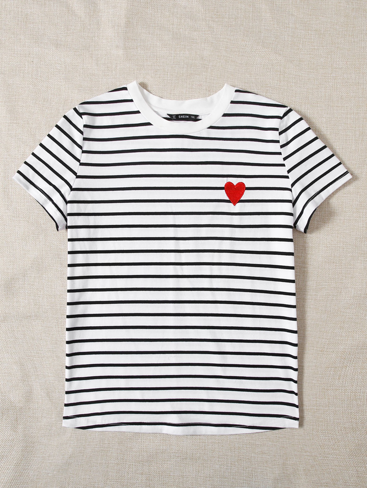 تي شيرت مطرز بتفاصيل قلب مخطط، صيفي