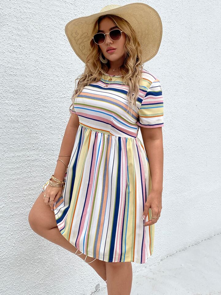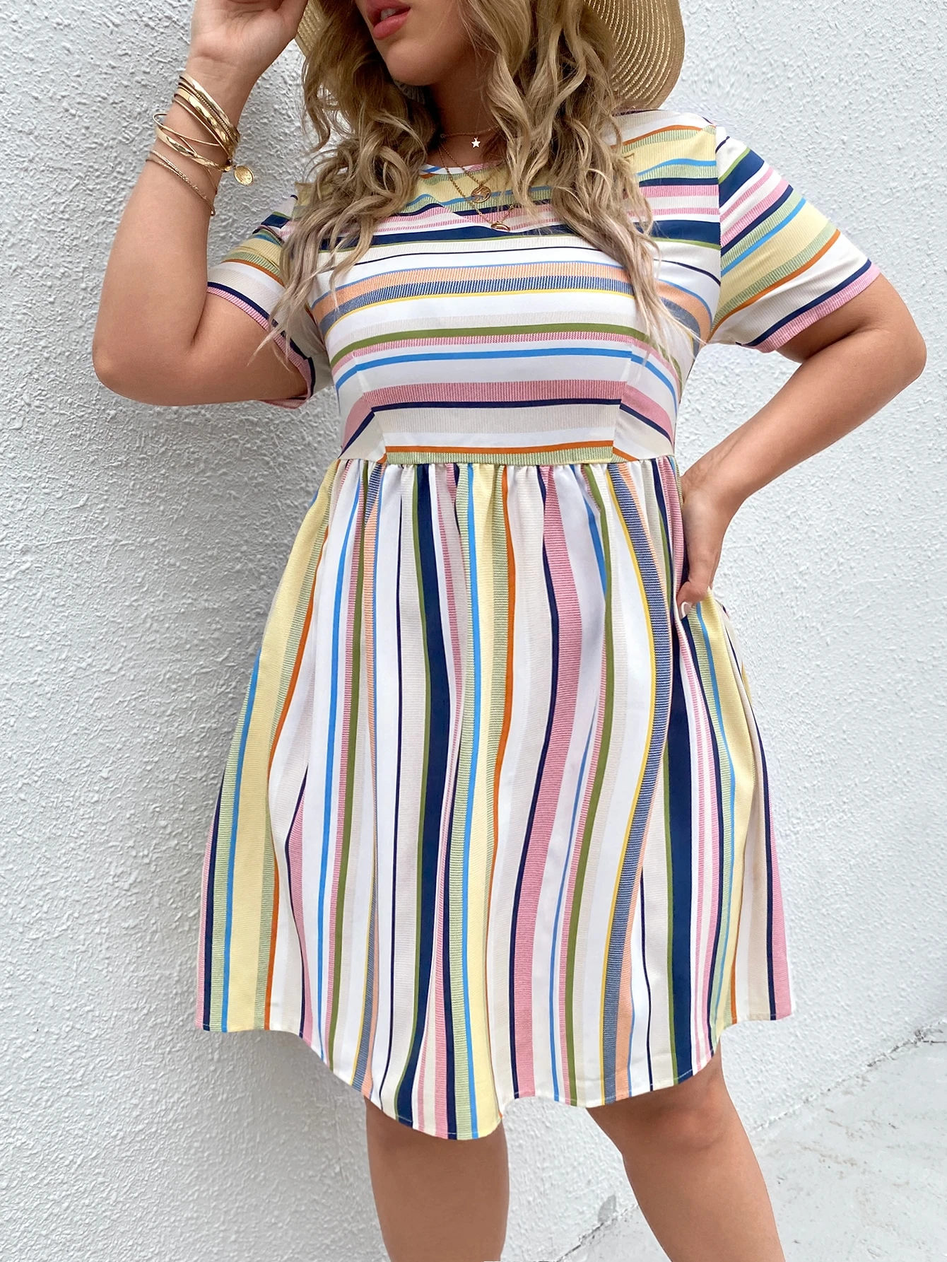 فستان بخط A بسستة خلفي بطباعة مخطط مقاس كبير