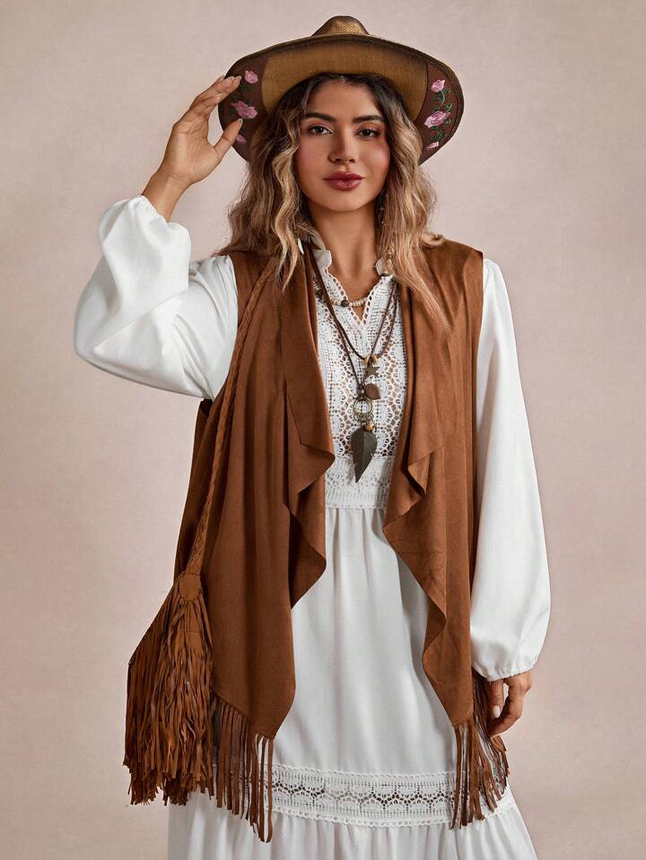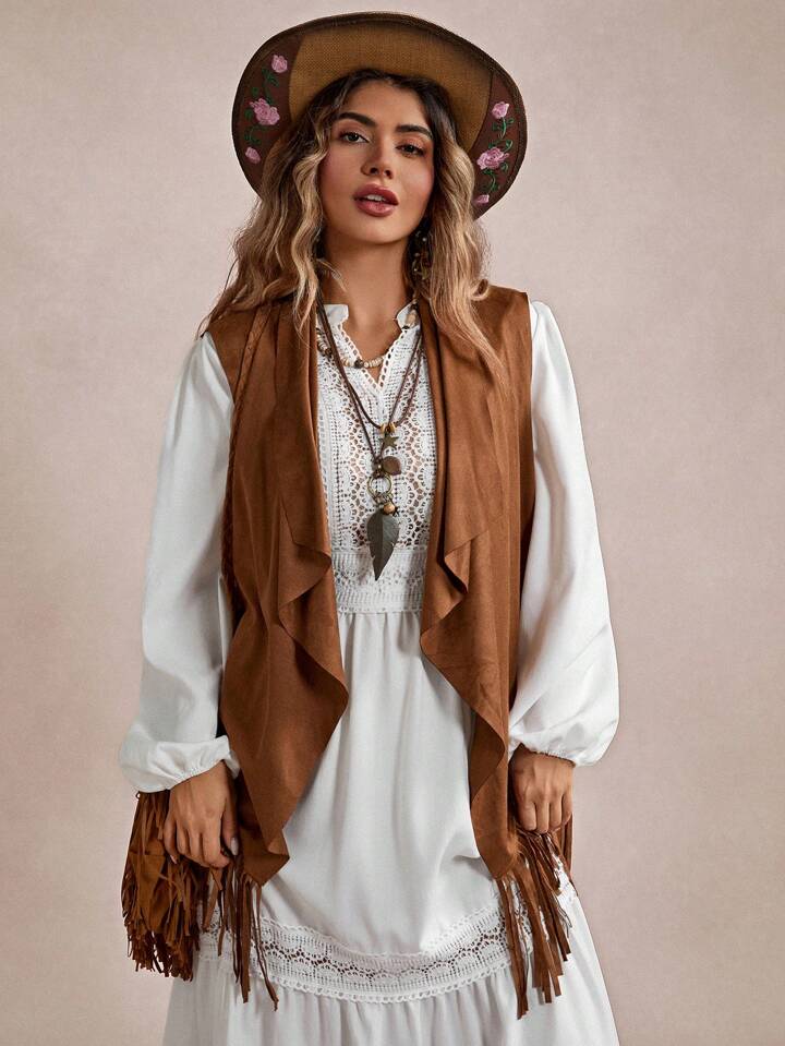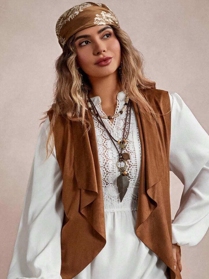 جاكيت بياقة مائلة من القماش المخملي الممسوح بالسيلوفان، وذيل مزين بالخيوط للارتداء في الشتاء
