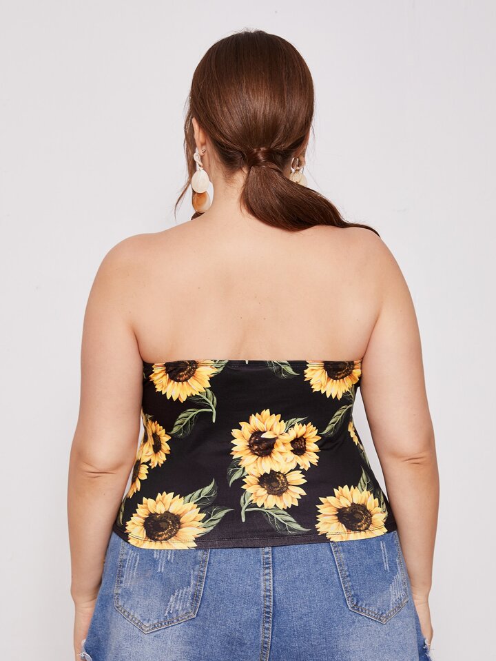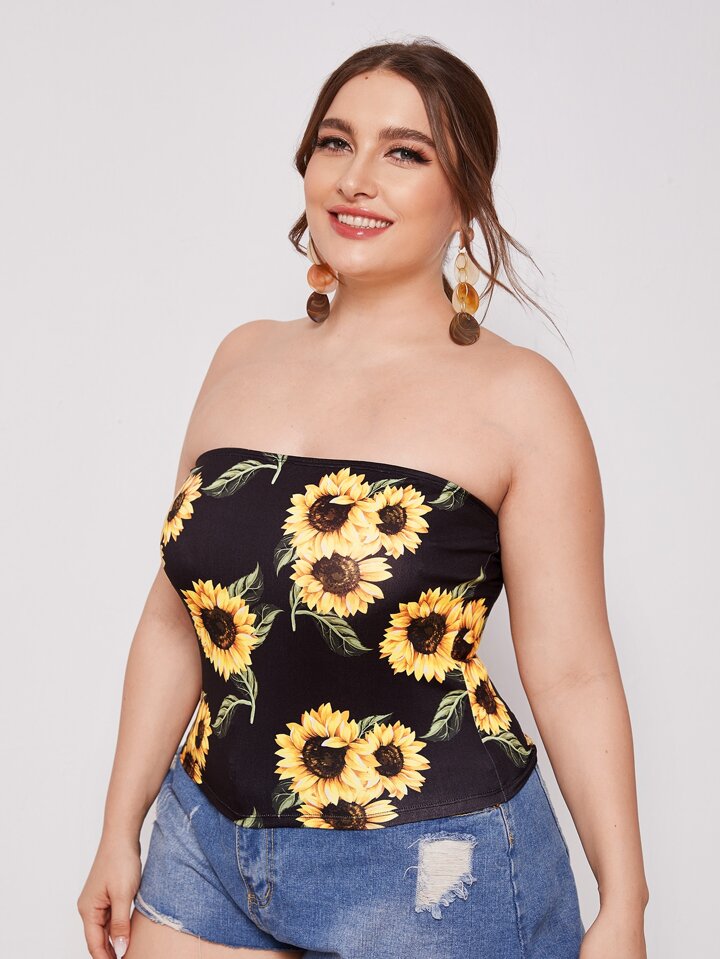 لباس علوي انبوب مقاس كبير بطباعة زهرة دوار الشمس