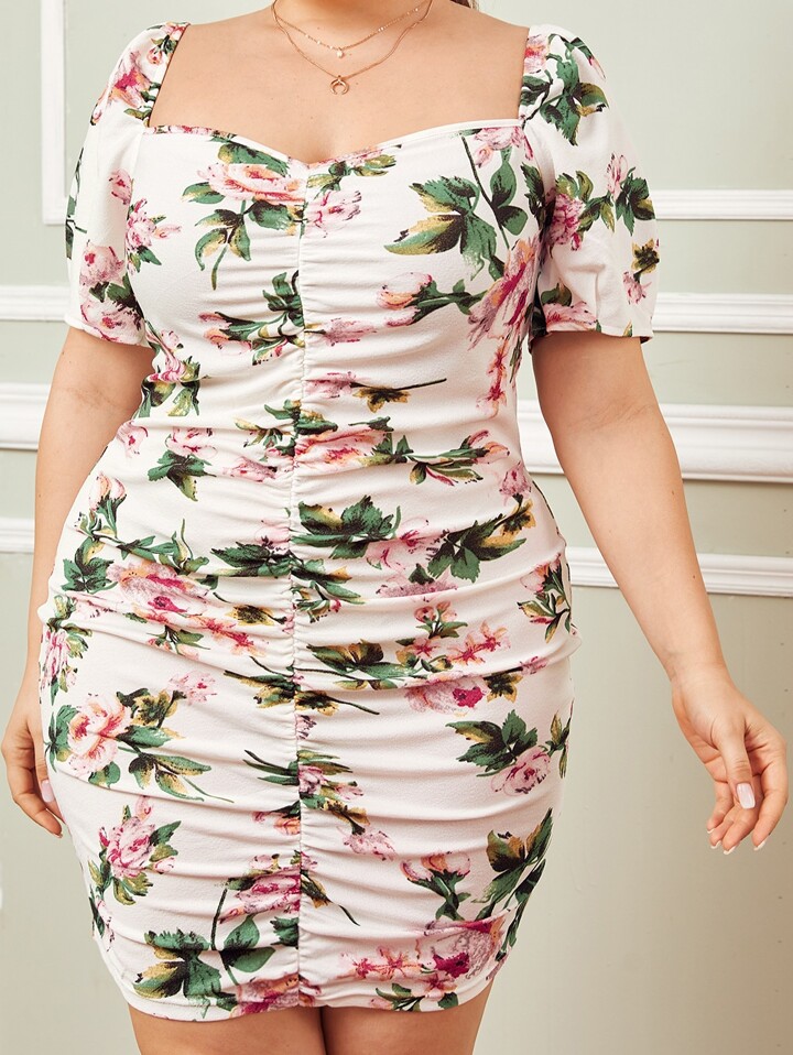 فستان مقاس كبير مزهر بطية بعنق سويت هرت