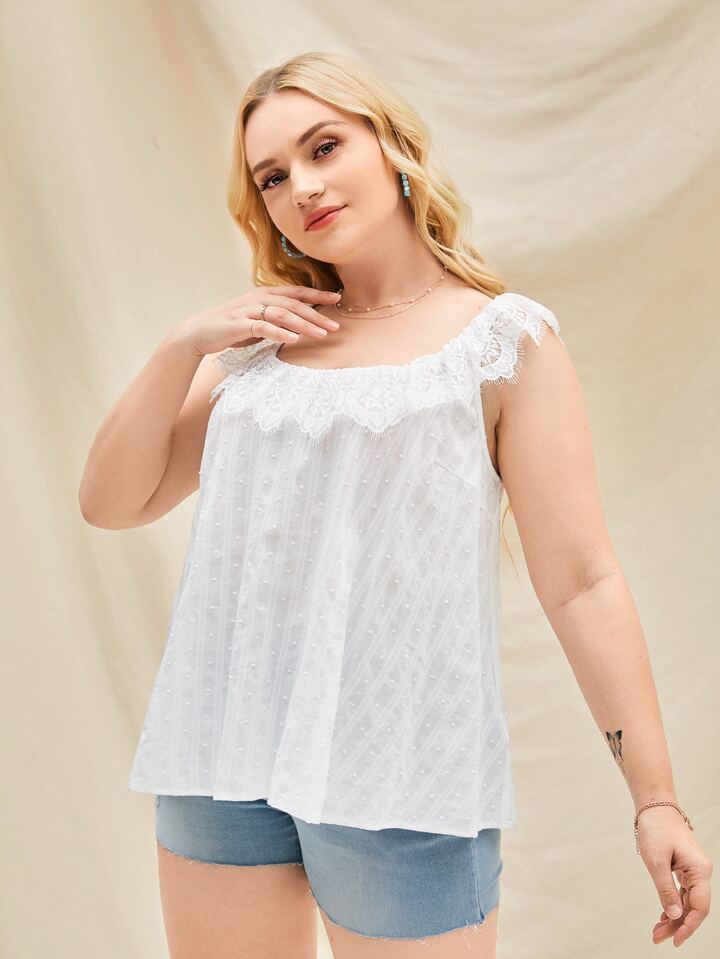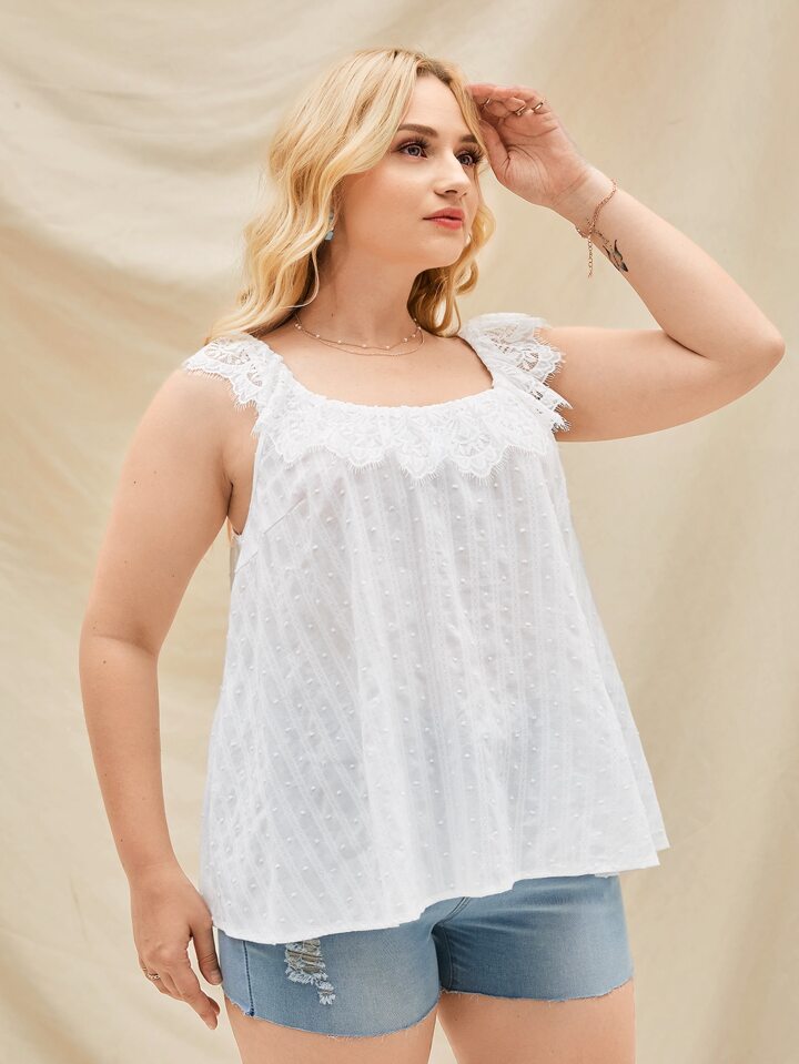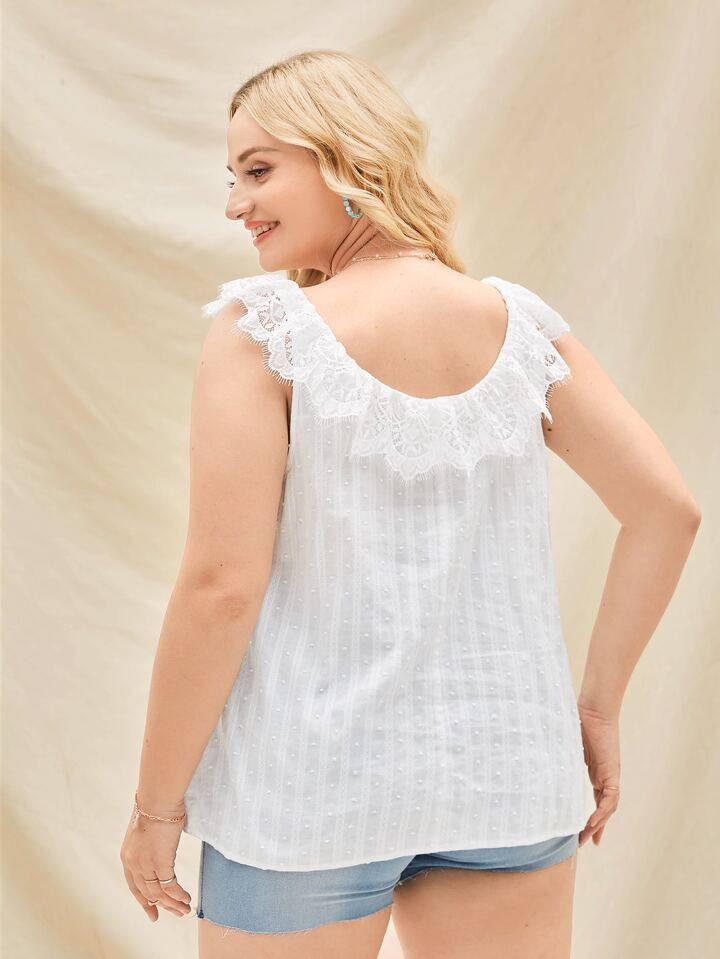 لباس علوي تانك منقط سويسري بلوحة دانتيل رمش مقاس كبير