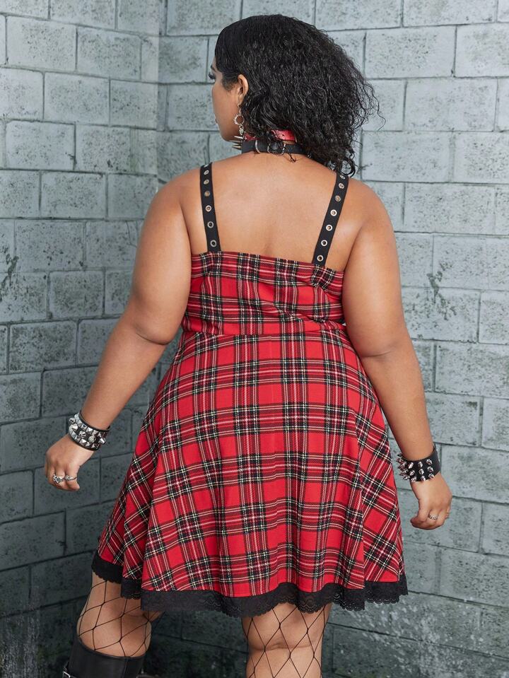 فستان كامي بطباعة الترتان مقلم دانتيل بدون حزام مقاس كبير
