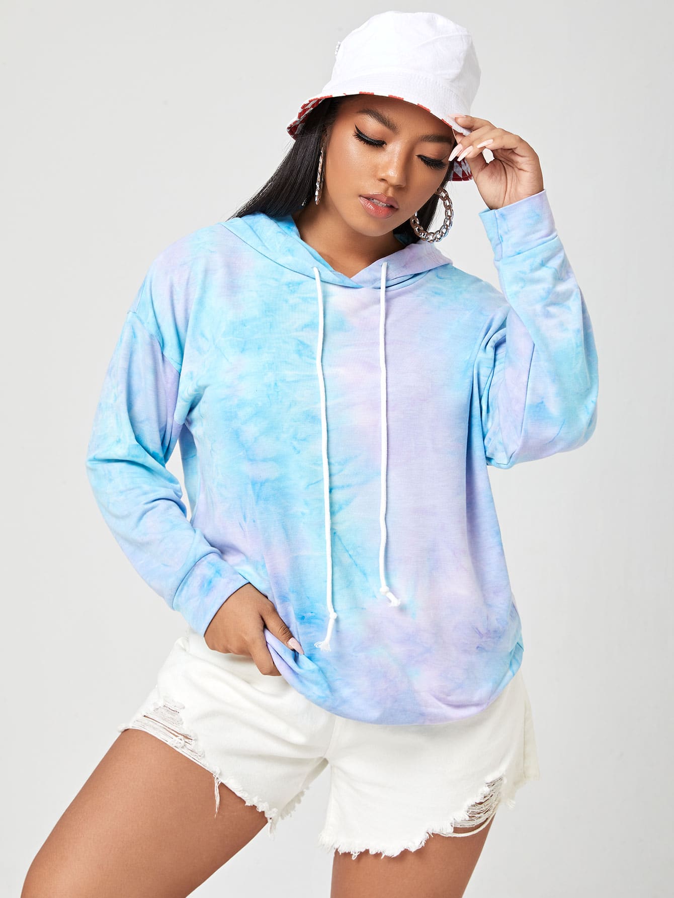 هودي منخفض الكتف بصبغ متعادل مقاس كبير