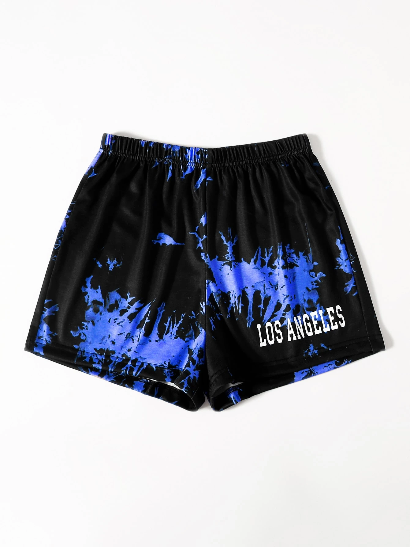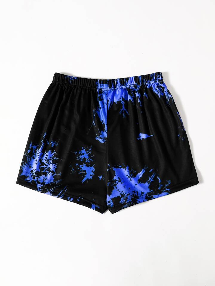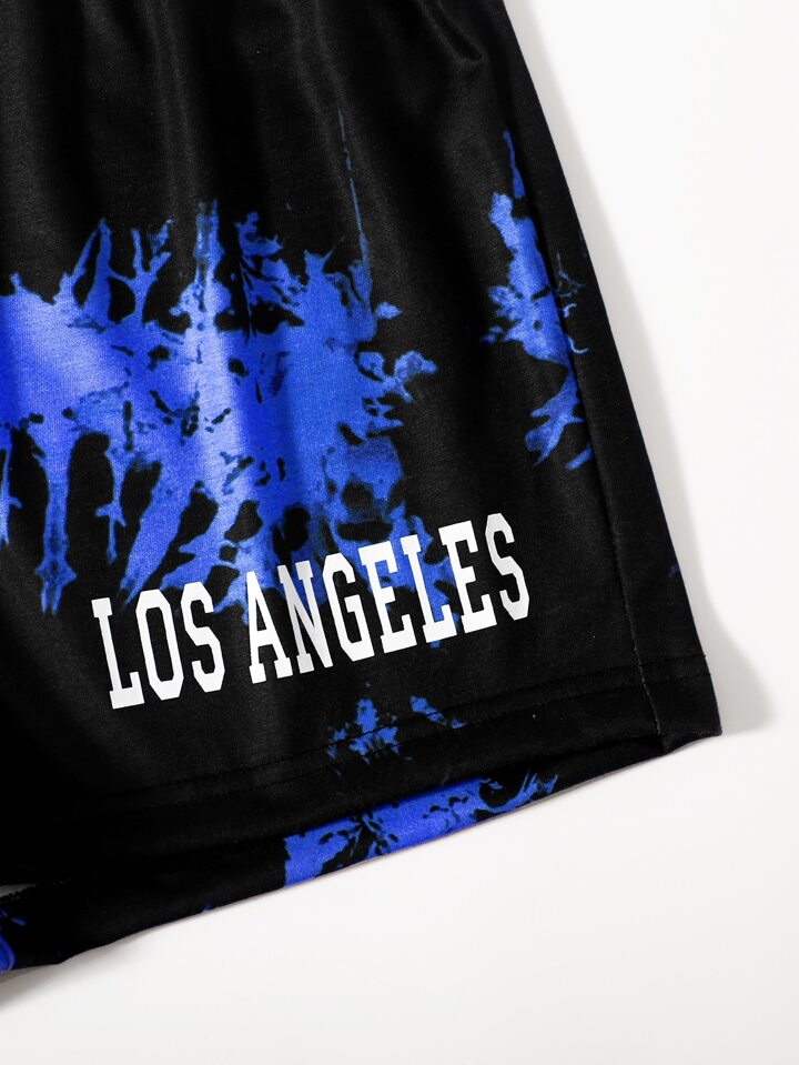 شورت تريك بجرافيك عبارة بصبغ متعادل مقاس كبير