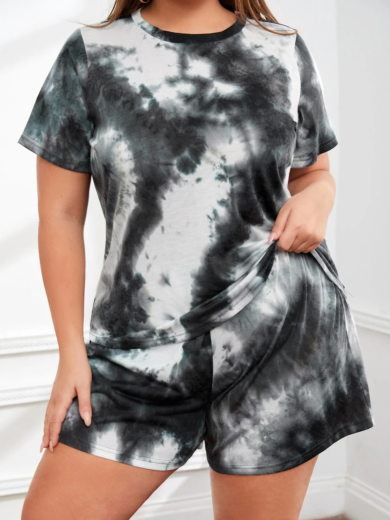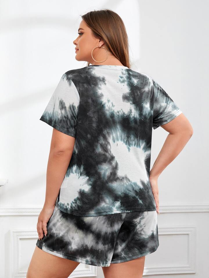 طقم شورت مع تي شيرت صبغ متعادل مقاس كبير