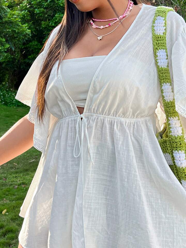 مقاس كبير بلوزة ربطة امامية اكمام فراشة بدون لباس علوي