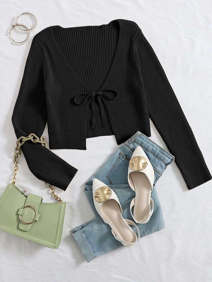 كارديجان محبوك مضلع بربطة امامي مقاس كبير