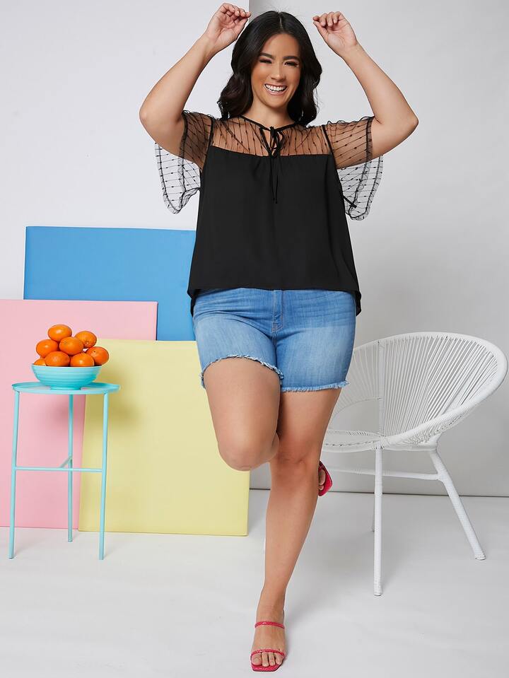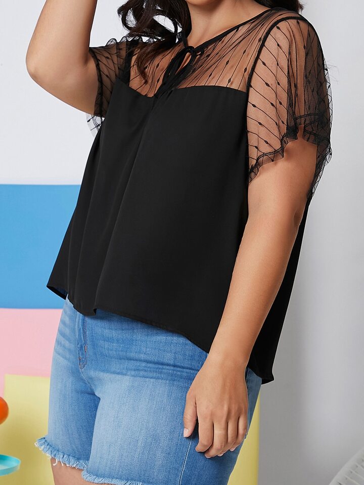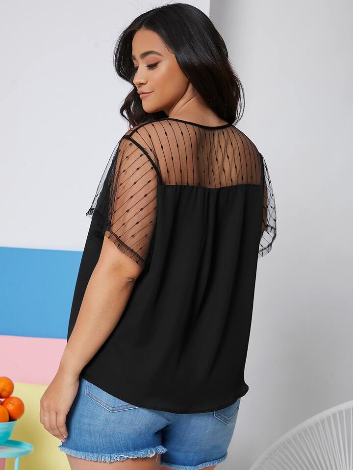 لباس علوي بصدر وباكمام شبكي شفاف بربطة عنق مقاس كبير