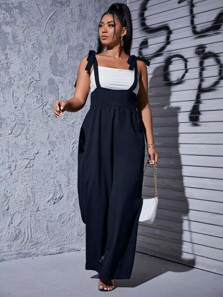 مقاس كبير بربطة كتف كامي بدسويت بساق واسع بدون لباس علوي كامي
