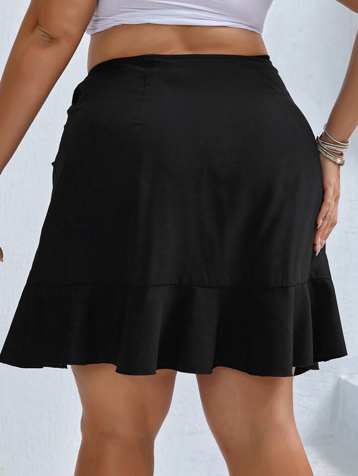 مقاس كبير تنورة ملفوفة ربطة جانبي حافة مكشكشة