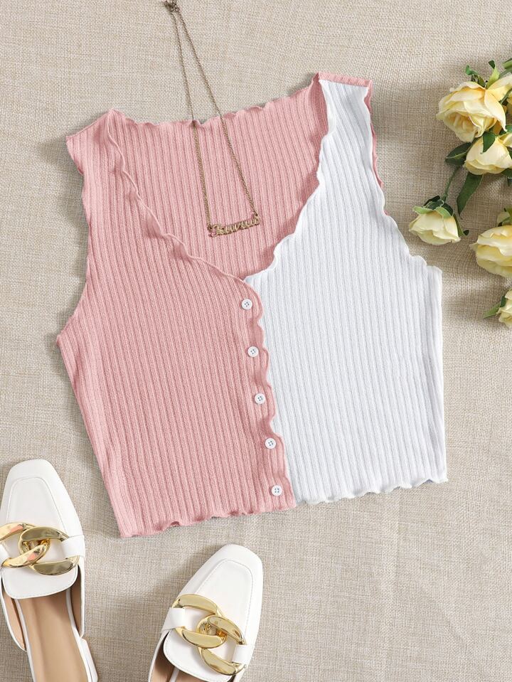 لباس علوي تانك لونين مقلم نمط نبات الخس مقاس كبير