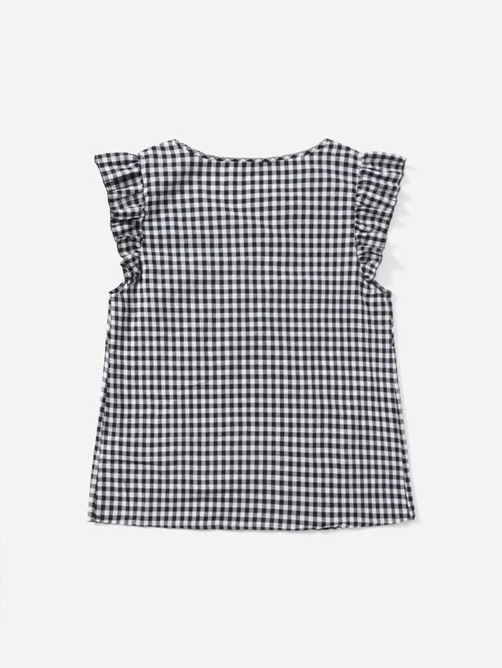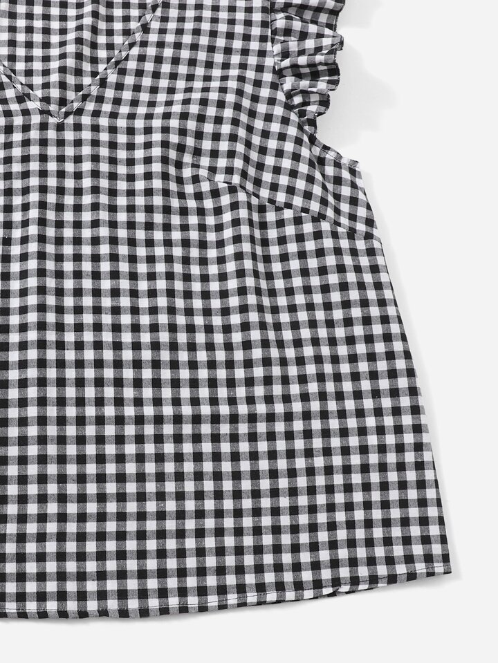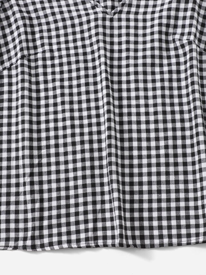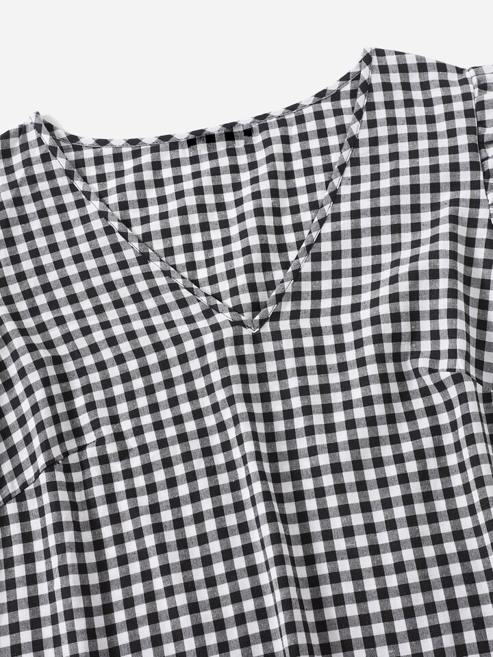 لباس علوي قطني مقلم بكتف مكشكش بياقة V مقاس كبير
