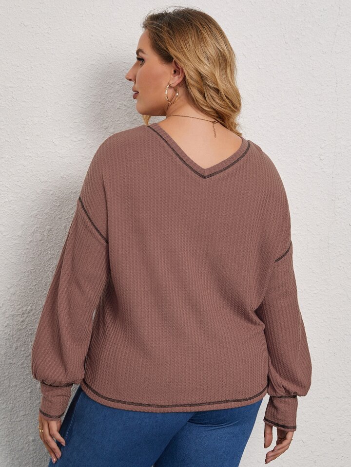 تي شيرت منخفض الكتف محبوك وافل مقاس كبير