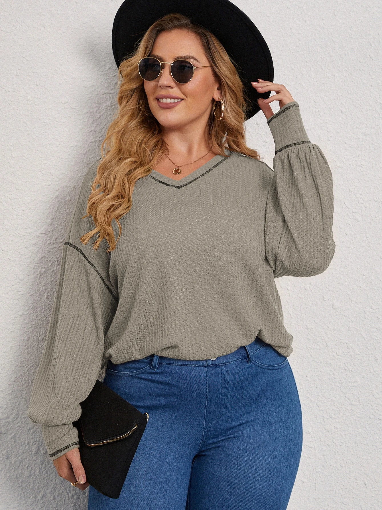 تي شيرت منخفض الكتف محبوك وافل مقاس كبير