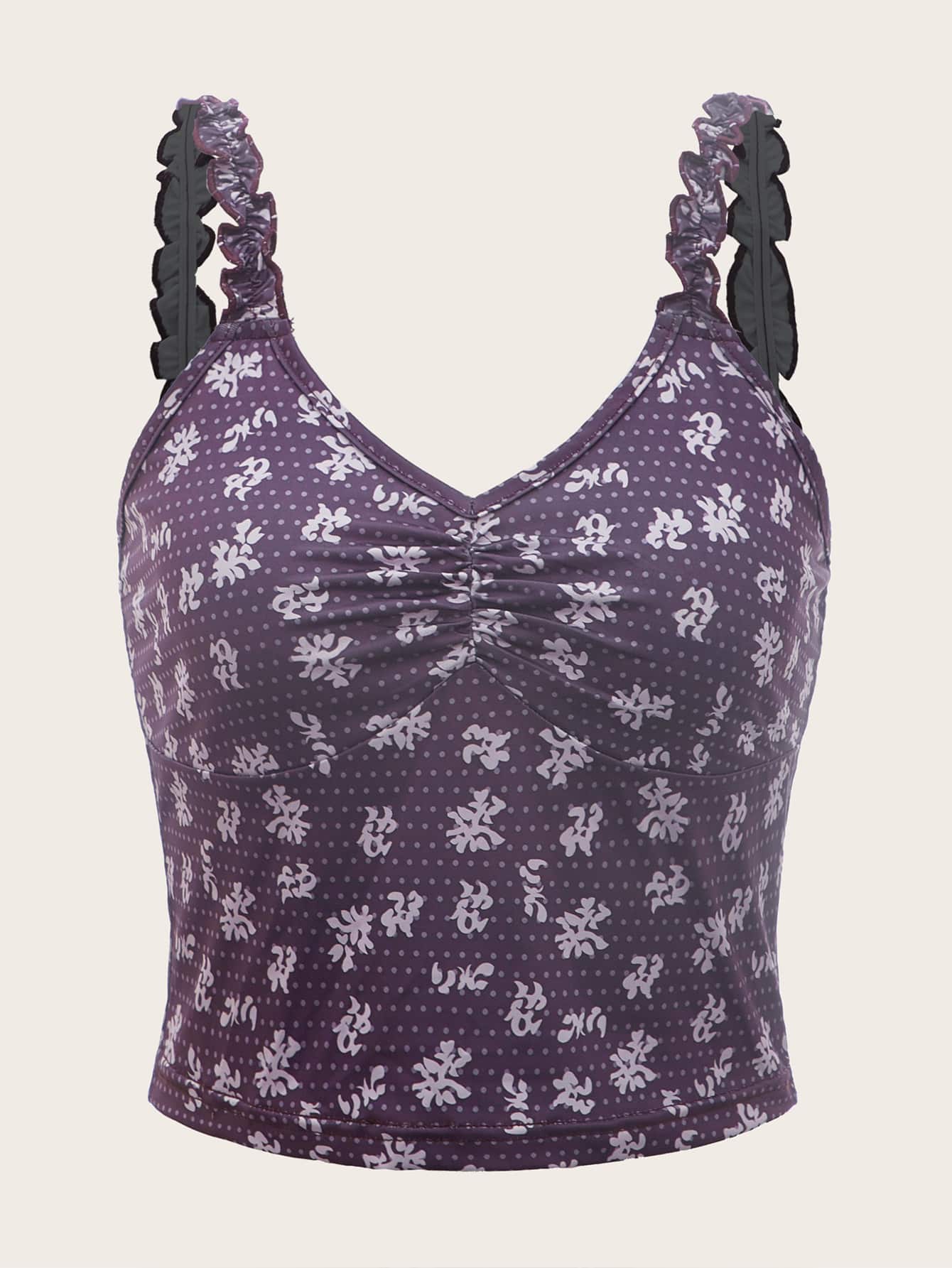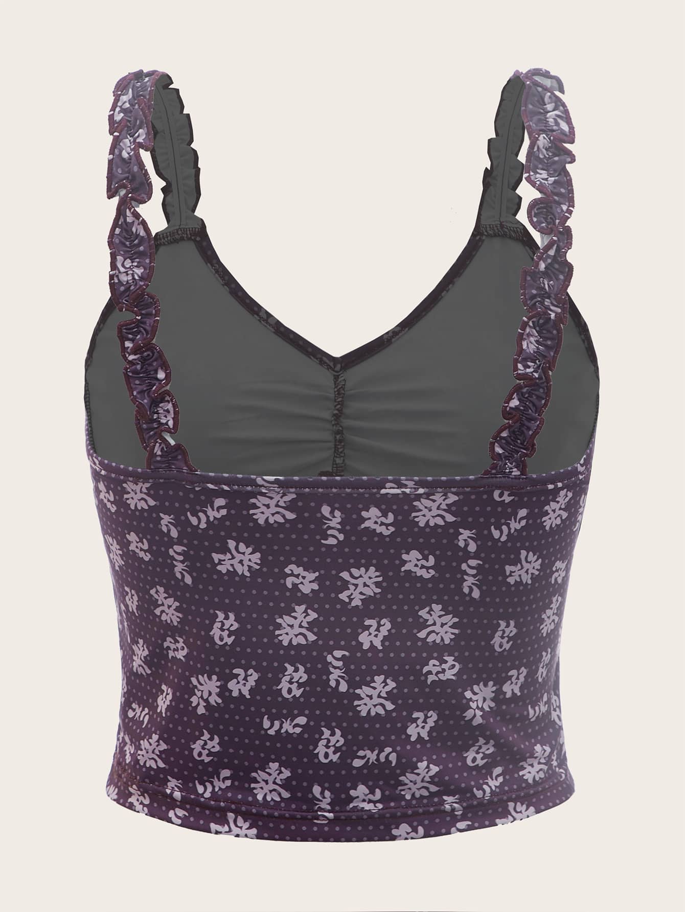 لباس علوي تانك بنقاط البولكا مع طباعة شامل مقلم بهدب