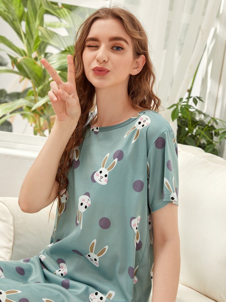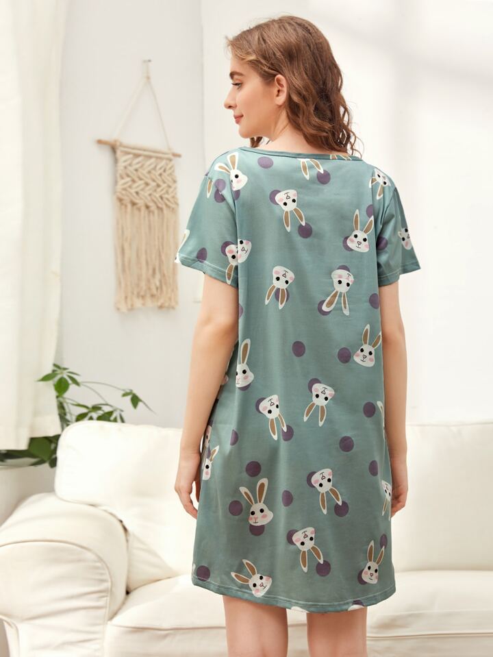 فستان ليلي بطباعة ارنب برسوم كرتونية ونقاط بلوكا