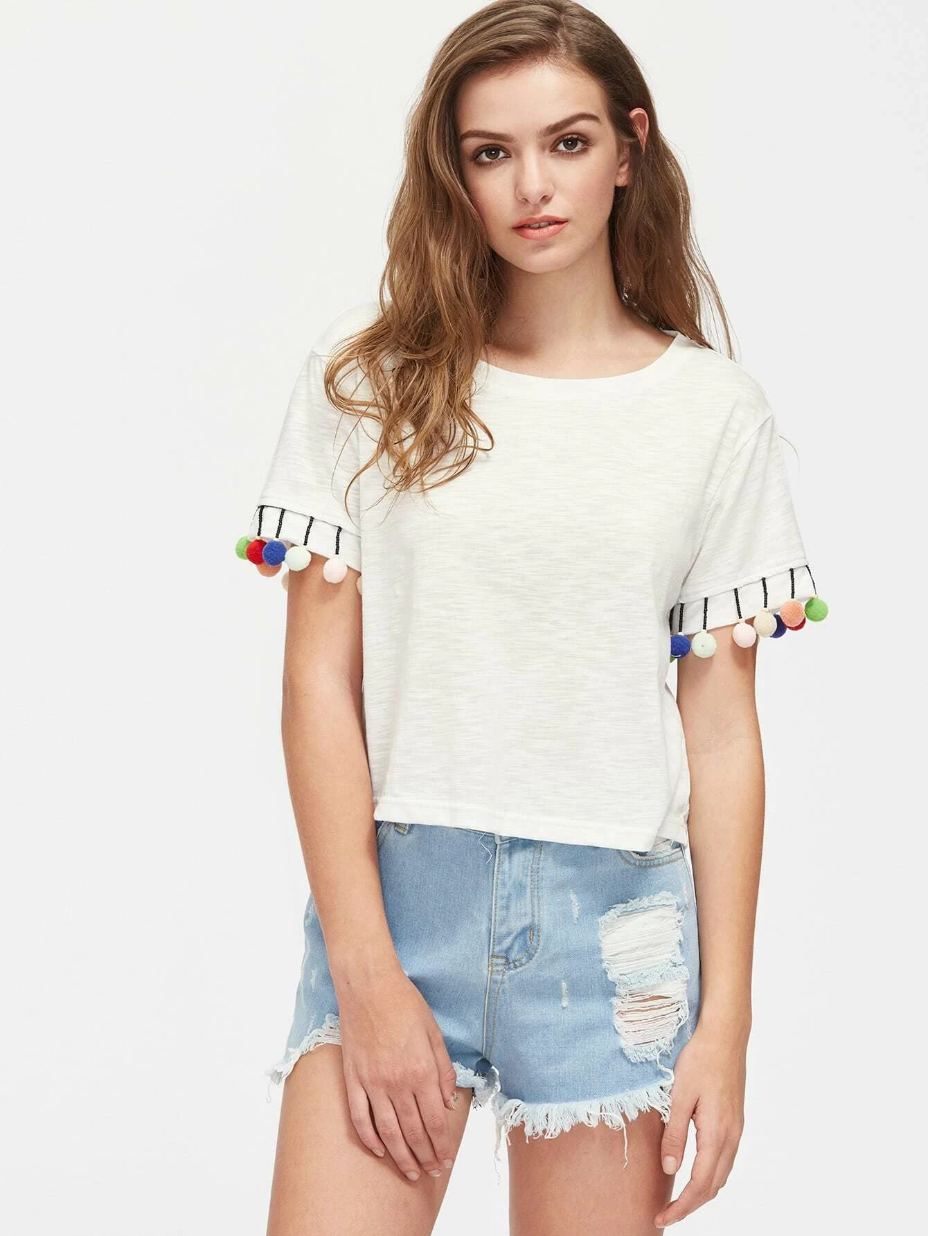 تيشيرت كم قصير تصميم كرة المخملة لنساء