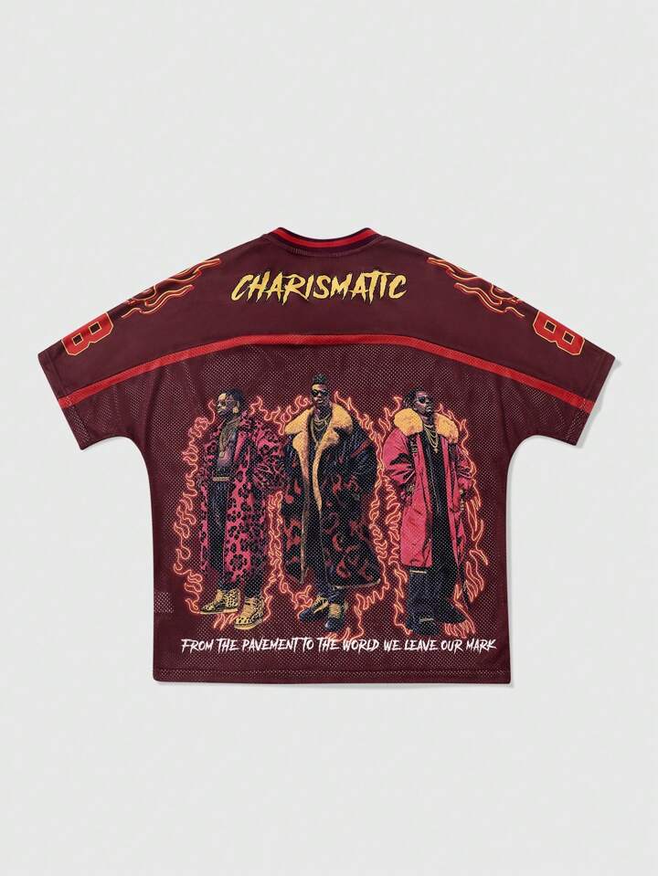 Prep تي شيرت رياضي للرجال كاجوال عصري مطبوع بشعارات وأشكال