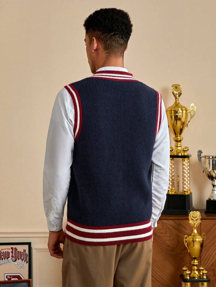 Prep صديري صوف كريكيت مطرز بحروف مقلم مخطط بدون قميص للشباب
