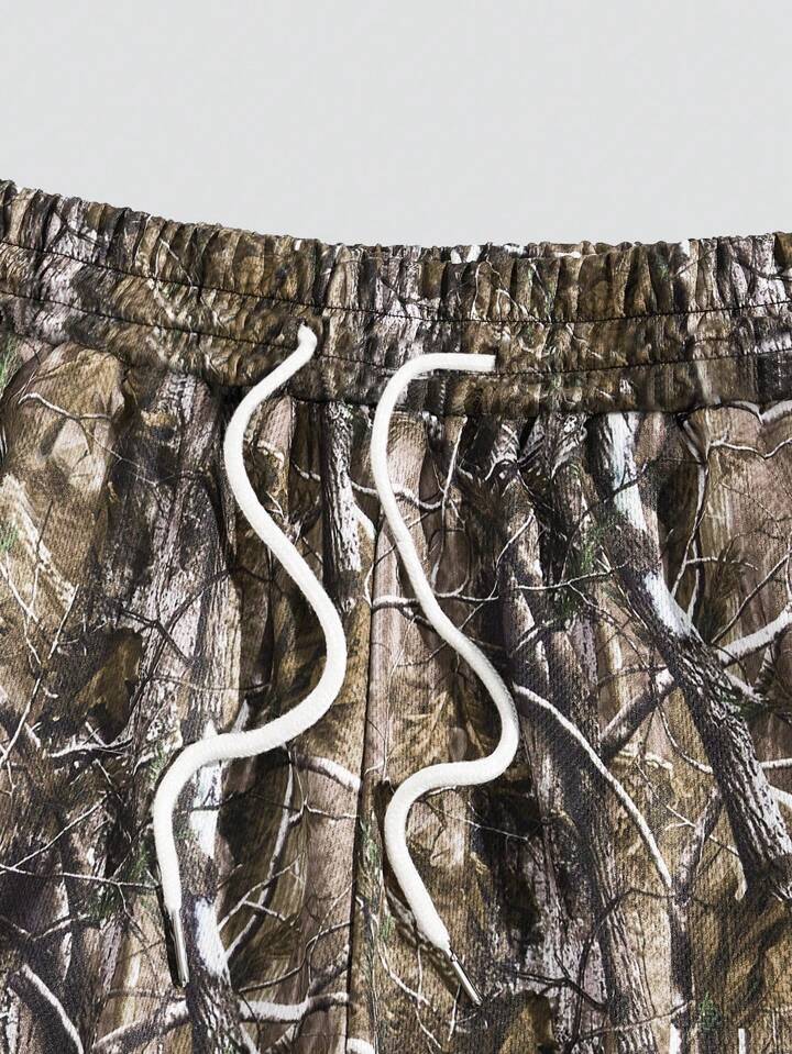 Prep شورت ذو خصر رباط بطباعة الأغصان للرجال، مدرسة