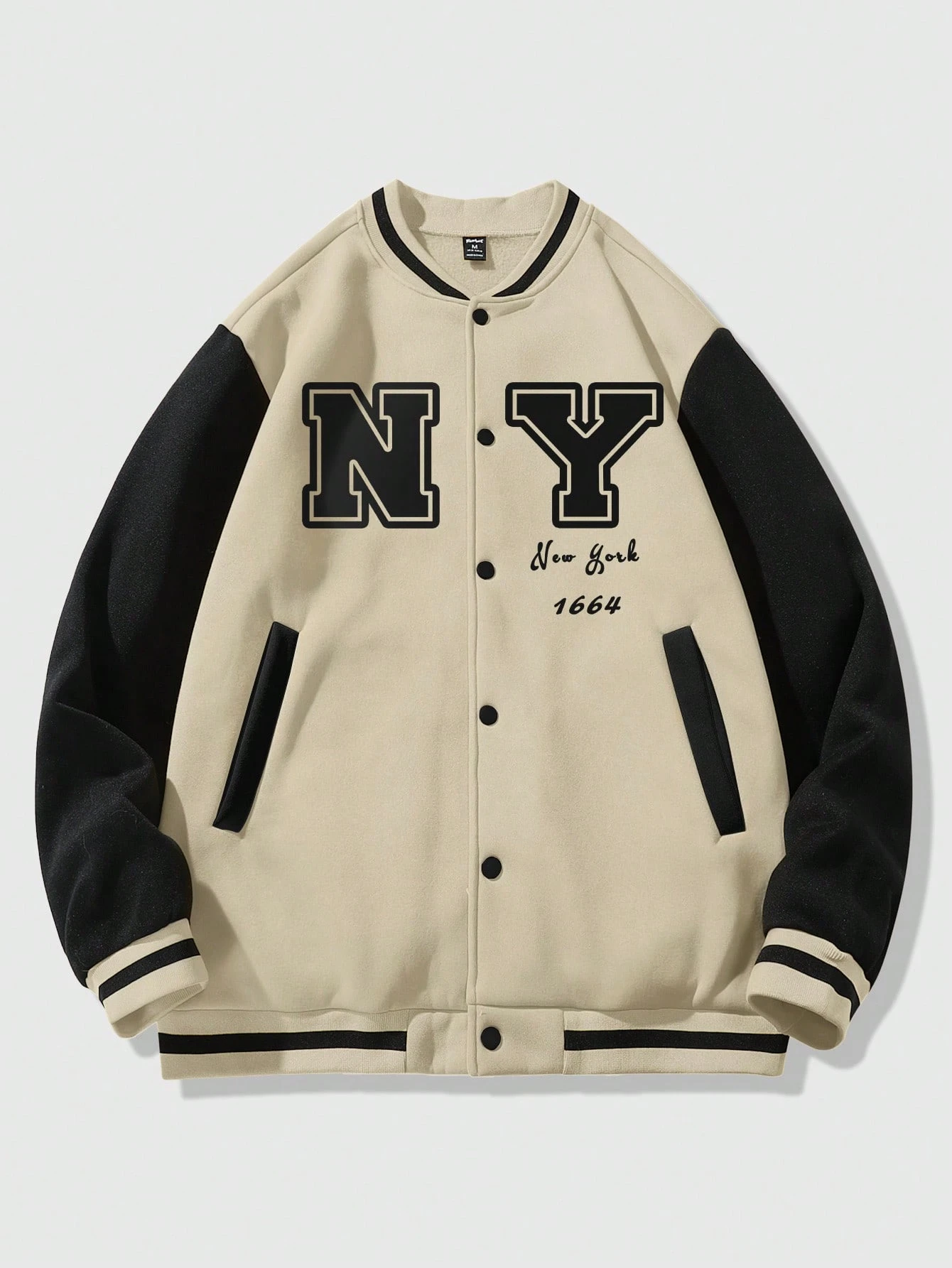 Prep جاكيت بطبعة حرفية بأسلوب الكلية للرجال