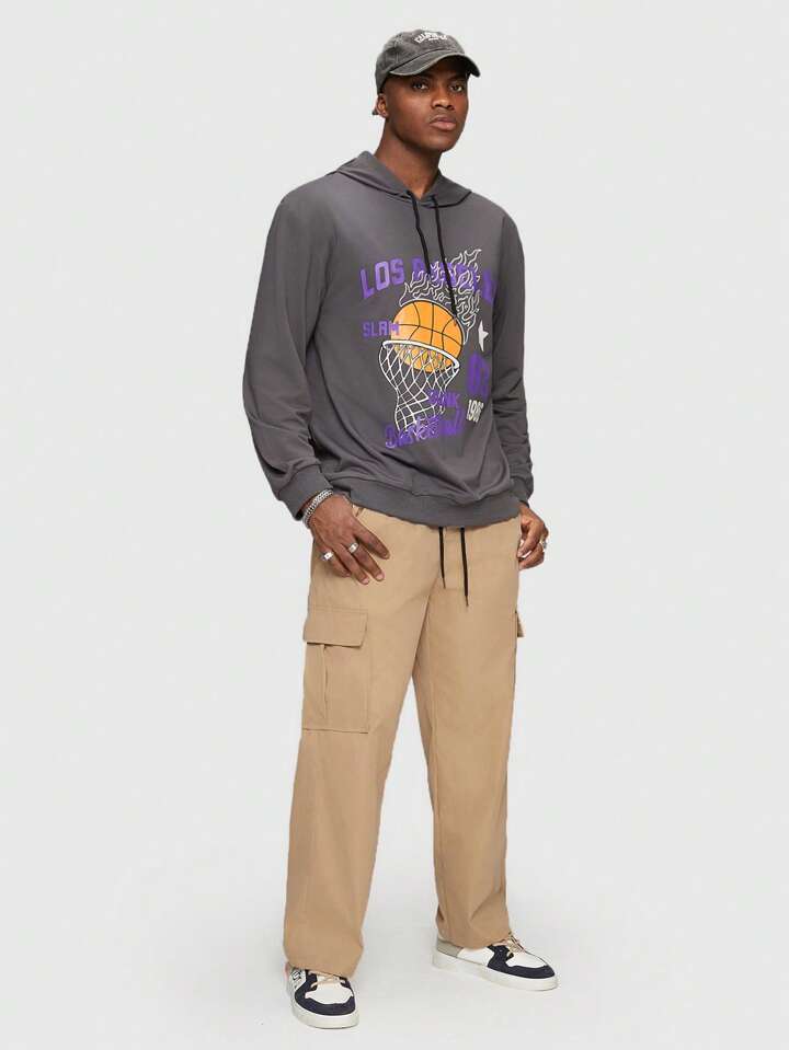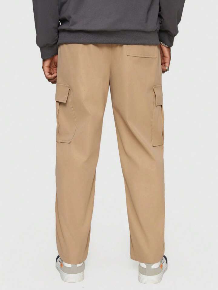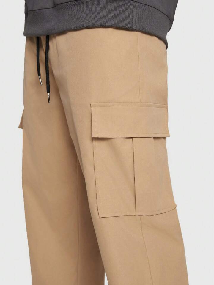 Prep سروال حمولة جيب بطية رجالي بخصر برباط جانبي