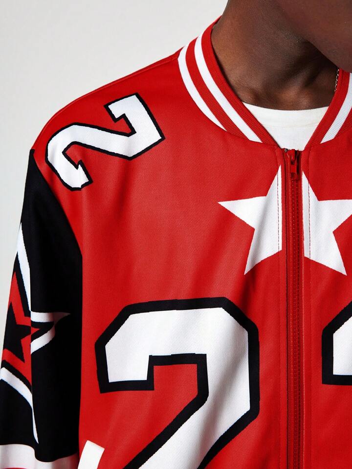 Prep جاكيت كاجوال بياقة بيسبول، طويل الأكمام، بطبعات أرقام وبنجمة، وألوان كتل للجاكيت موديل الخريف للرجال