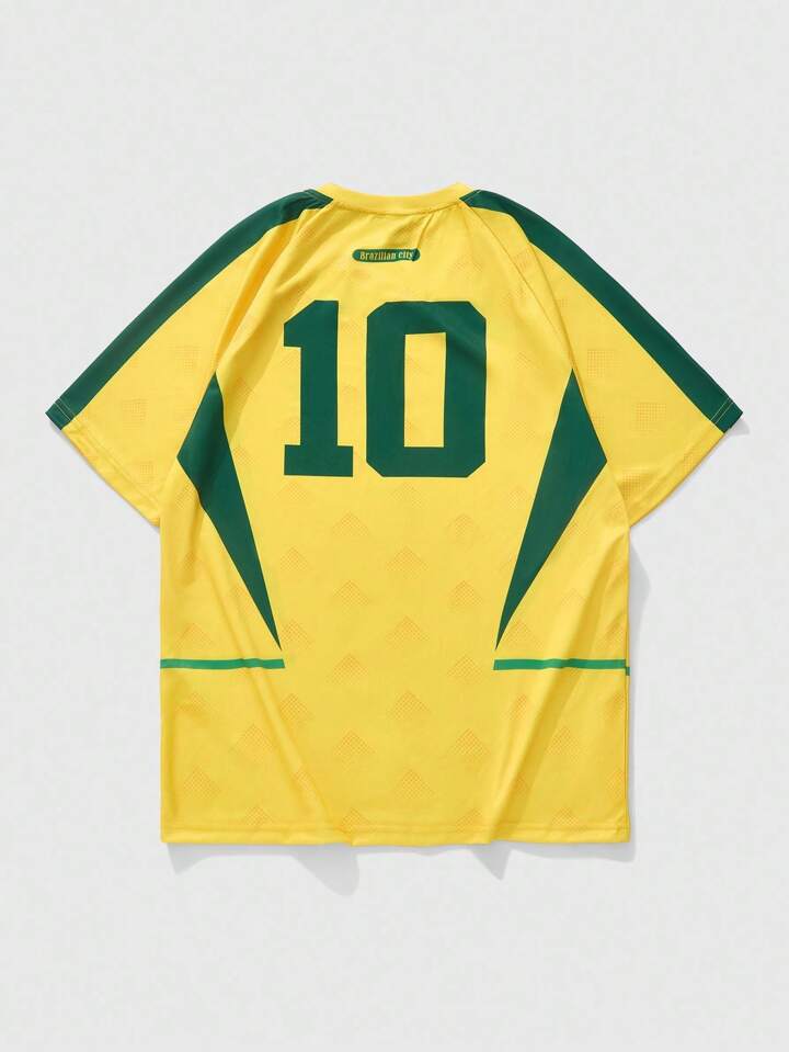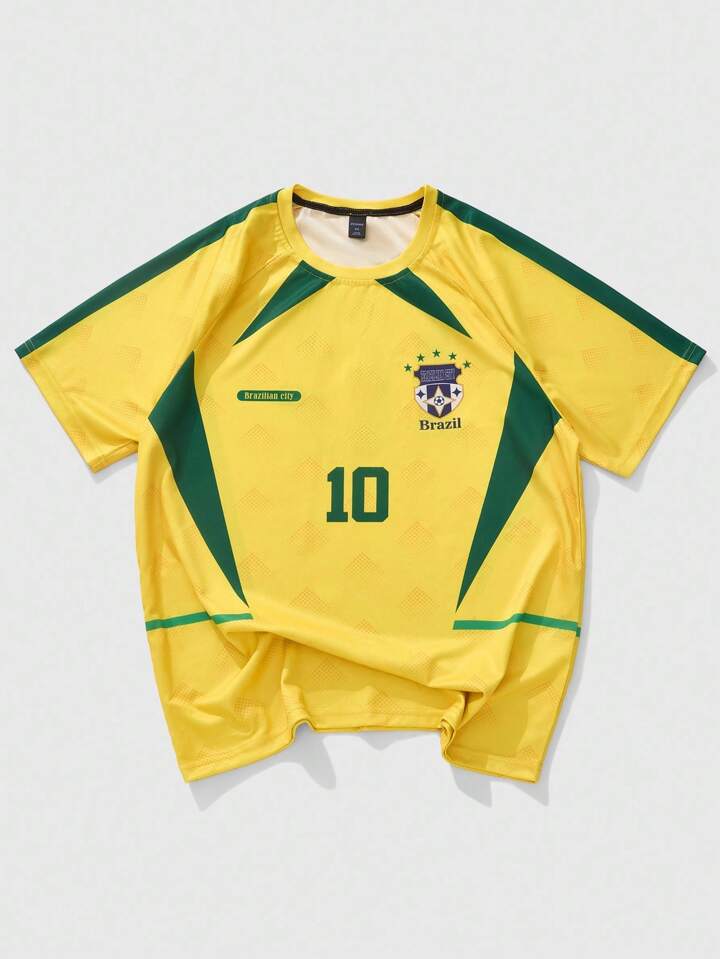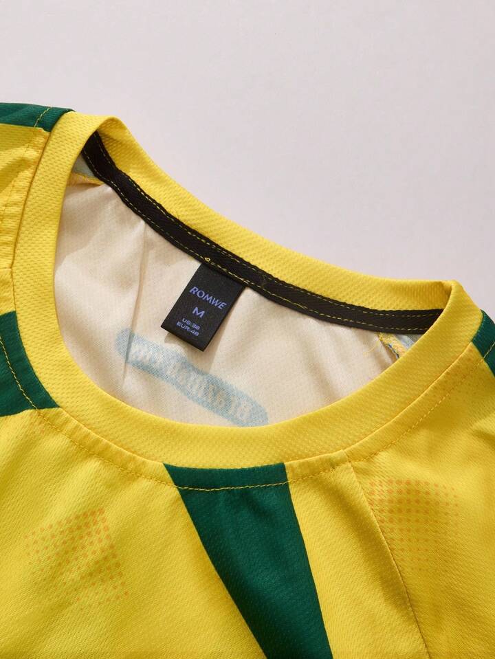 Prep رجالي كاجوال رقبة دائرية مطبوع بكرة القدم والأحرف كم قصير قصير
