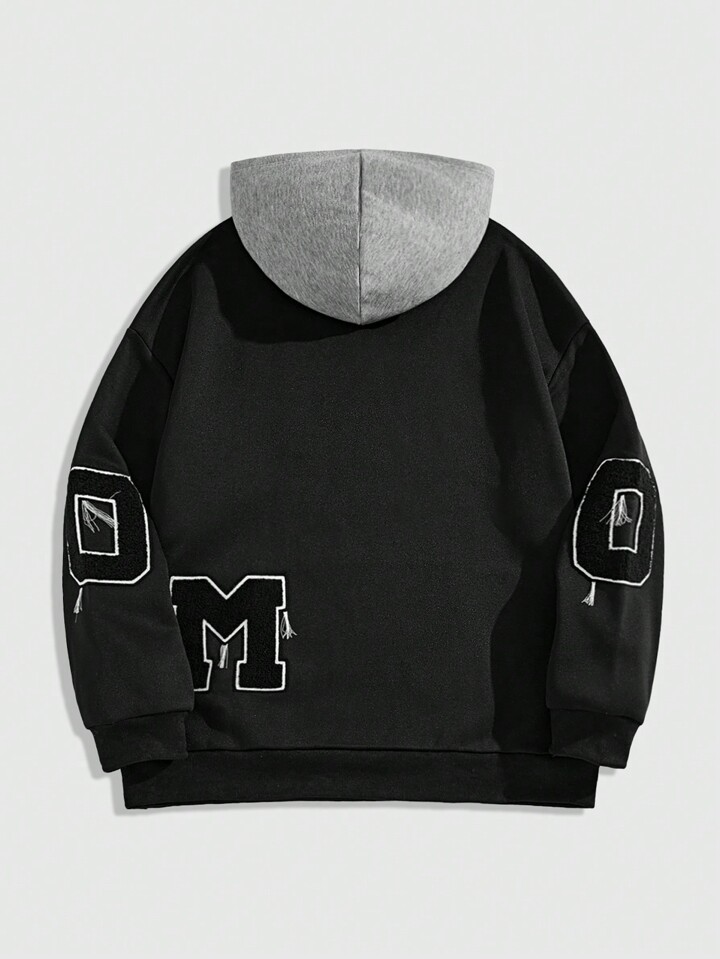 Prep هودي كاجوال رجالي مطبوع بشعار ولون متباين، مناسب للخريف والشتاء