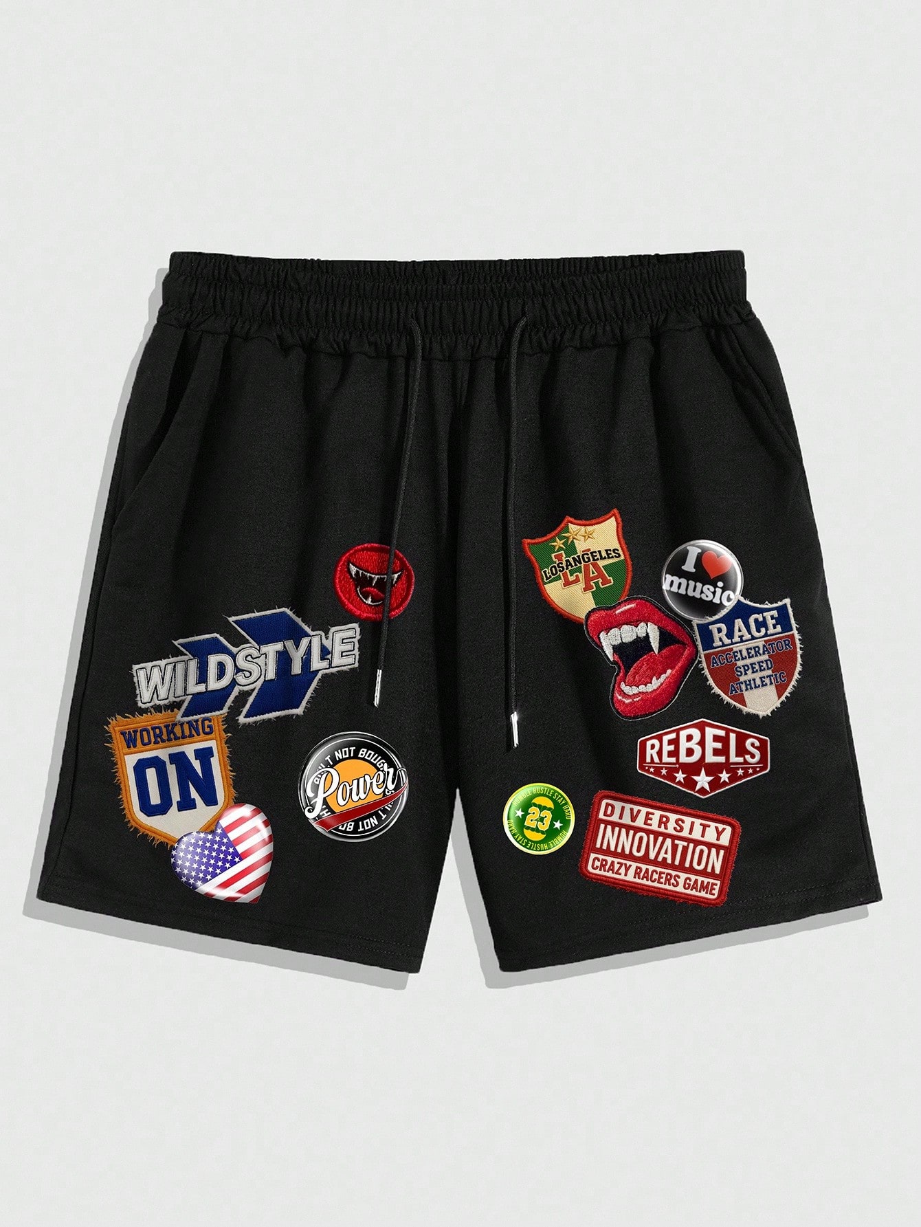 Prep شورت كاجوال فضفاض بخصر رباط وجيب مطبوع بالحروف للرجال
