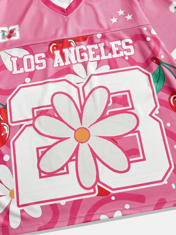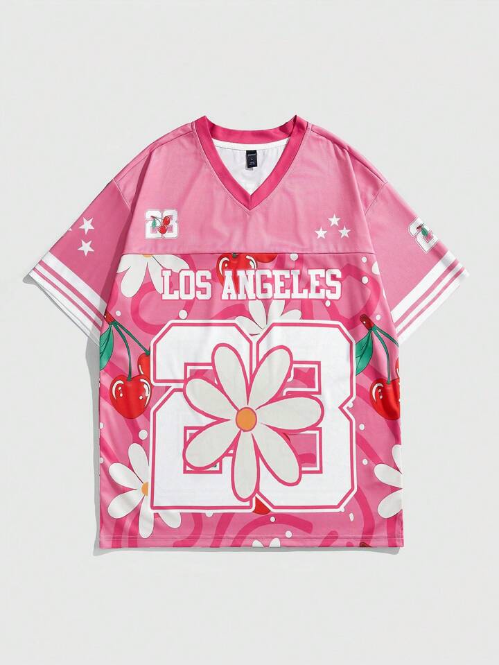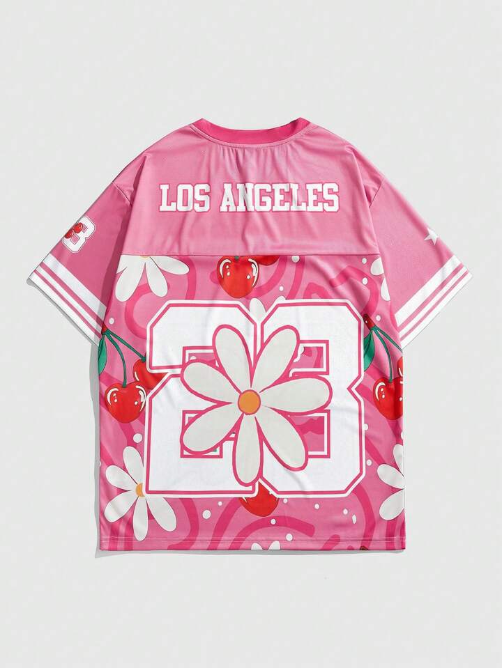 Prep تي شيرت رياضي قصير الأكمام للرجال مطبوع عليه حرف و أزهار