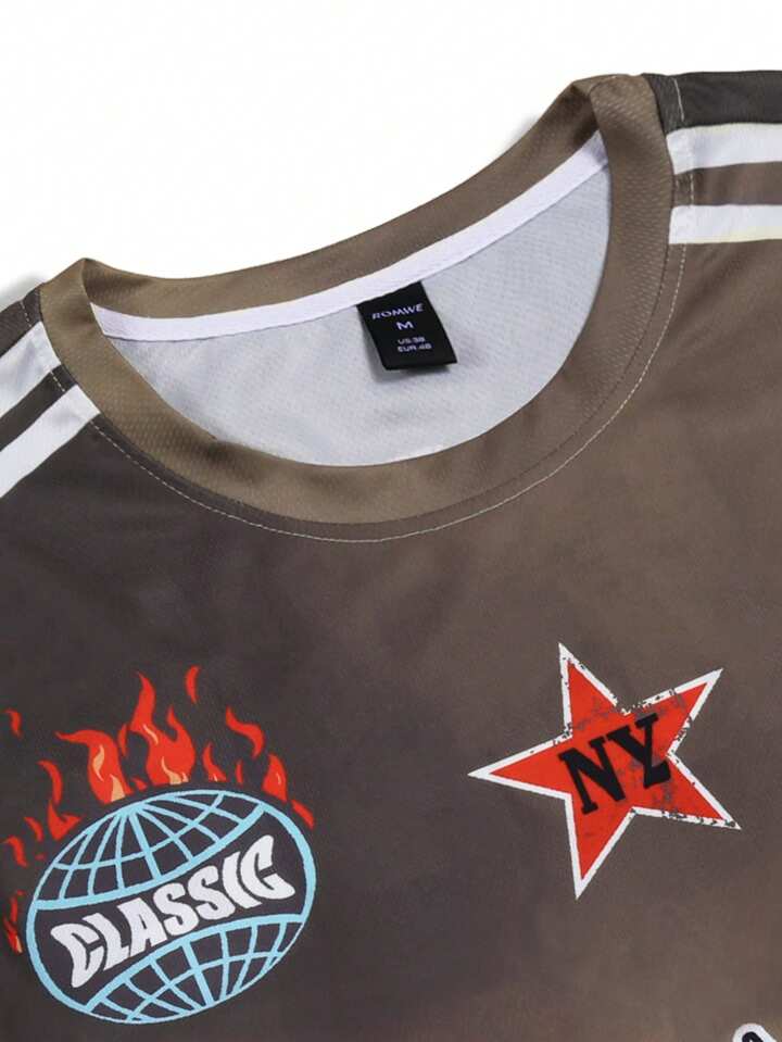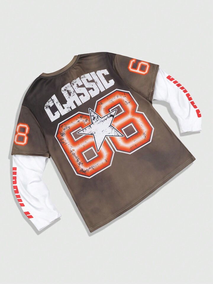 Prep تي شيرت رياضي بأكمام طويلة للرجال بطبعات حرفية وبتصميم تي شيرت كرة القدم 2 في 1