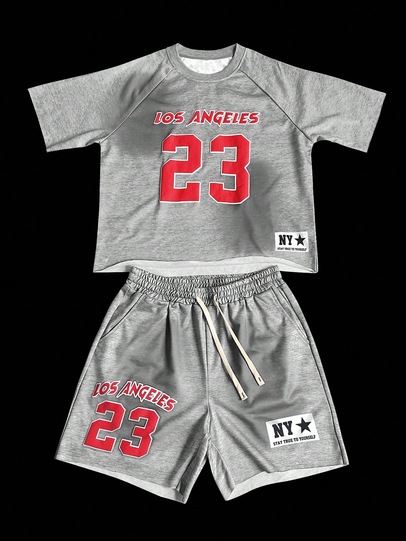 Prep طقم قميص رجالي رقم 23 بياقة مستديرة وأكمام راجلان