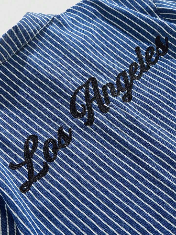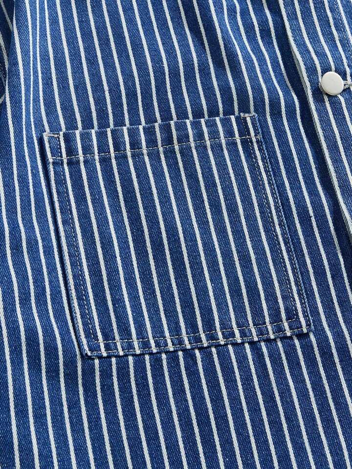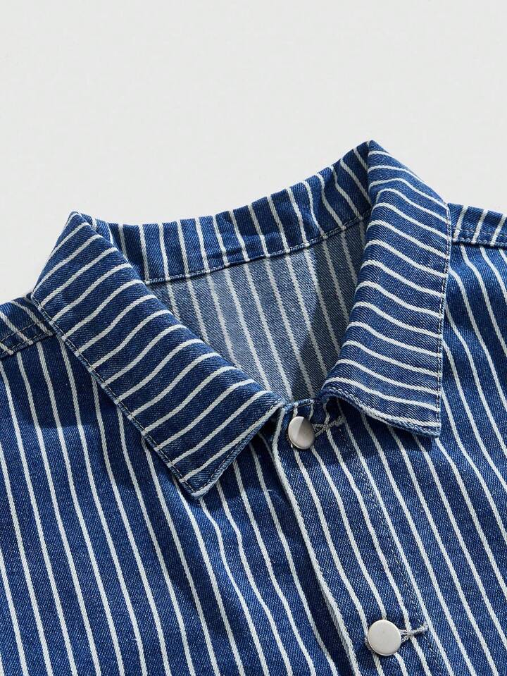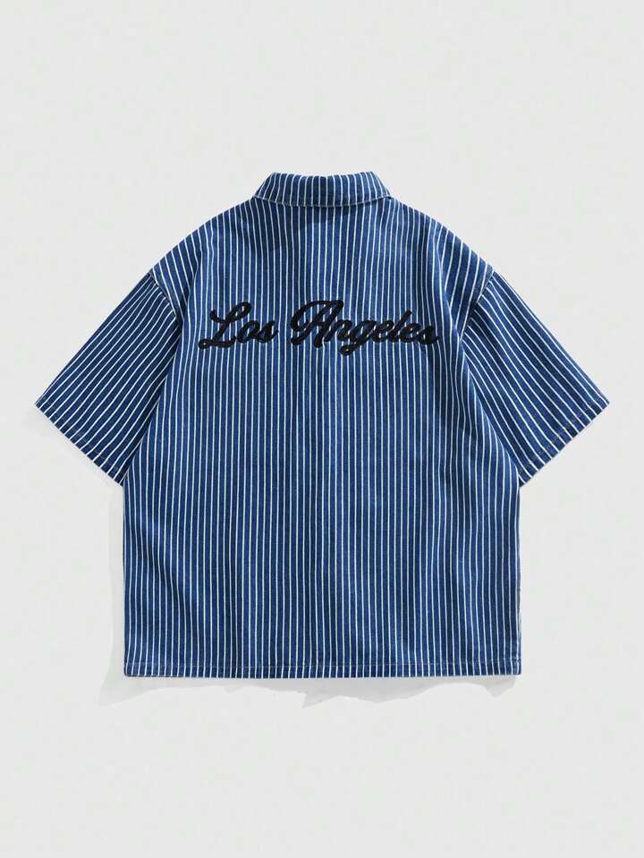 Prep قميص جينز كاجوال ذو جيب بأكمام قصيرة وخطوط للرجال