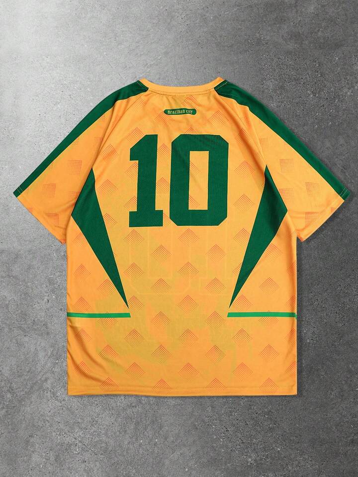 Prep قميص تي شيرت قصير الأكمام مطبوع برسم كرة القدم، رقبة دائرية، أكمام راجلان، تصميم كاجوال وإبداعي، مناسب للصيف