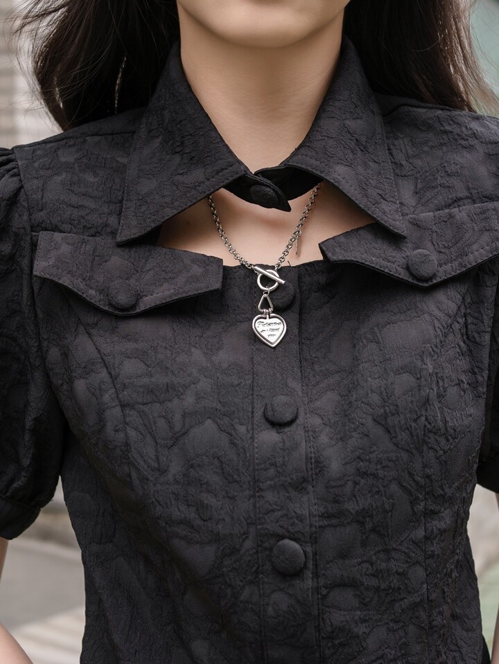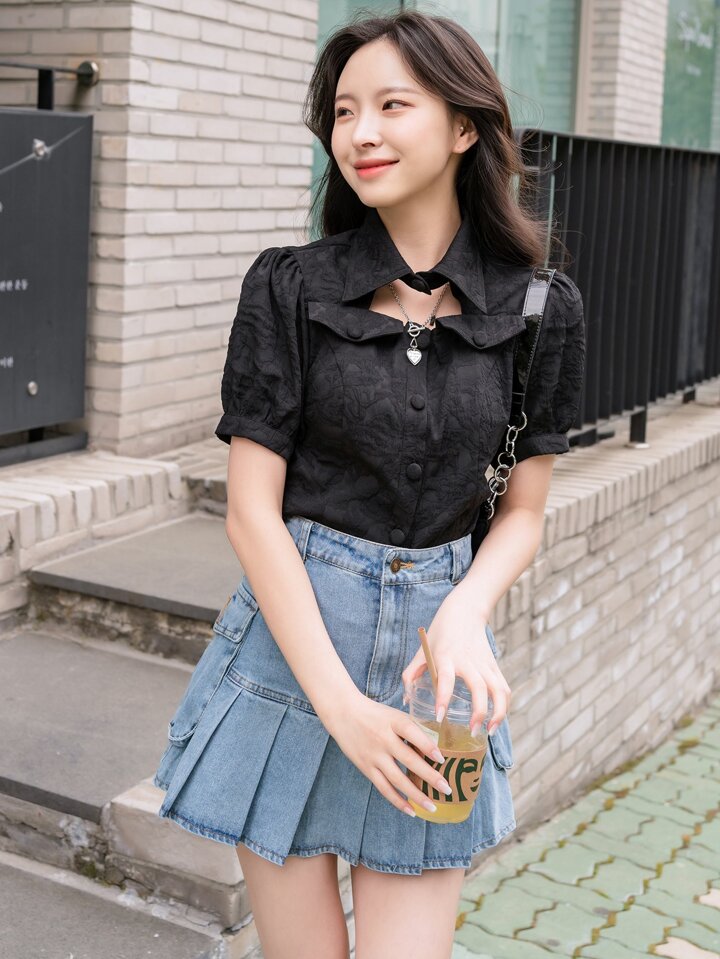 قميص بأزرار امامية مقصوص وباكمام منتفخة