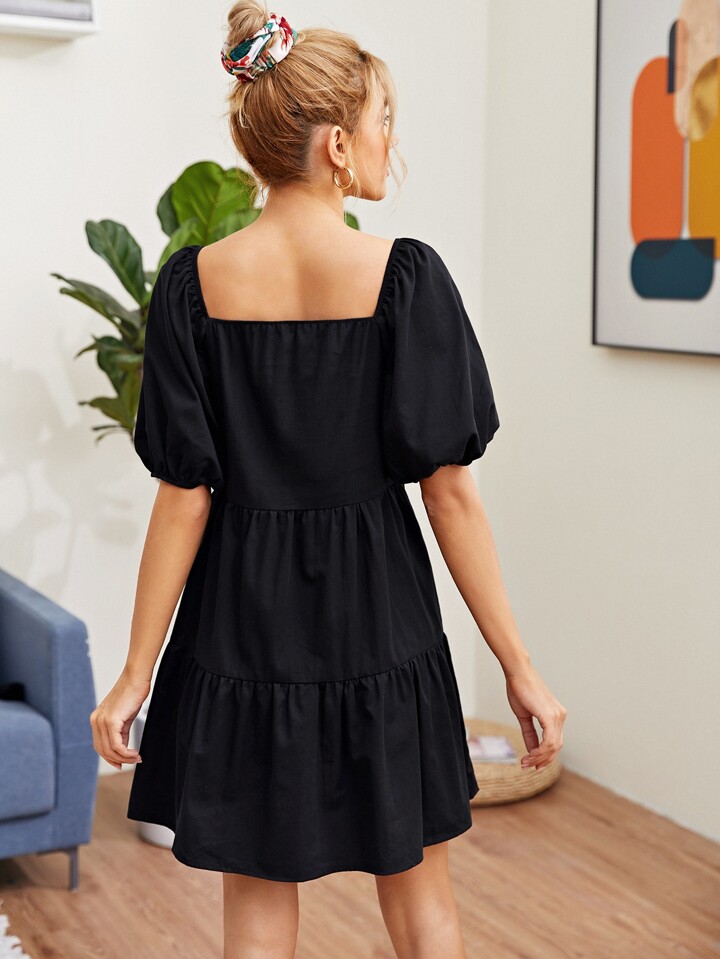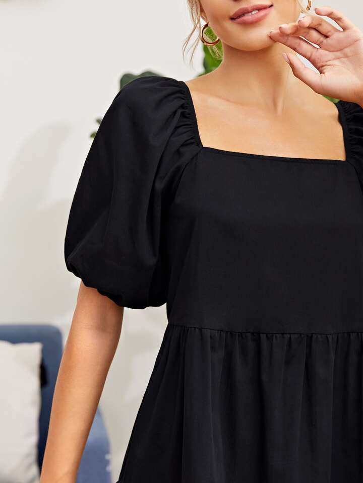 فستان سموك بحافة مكشكشة وباكمام منتفضة