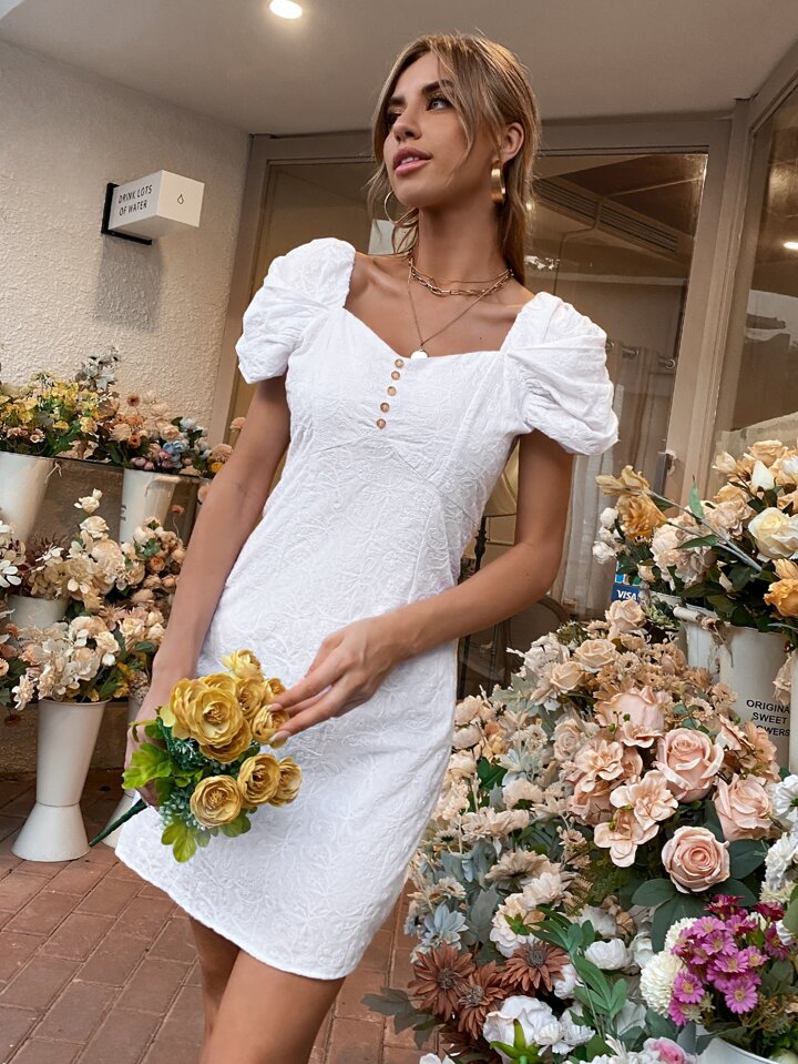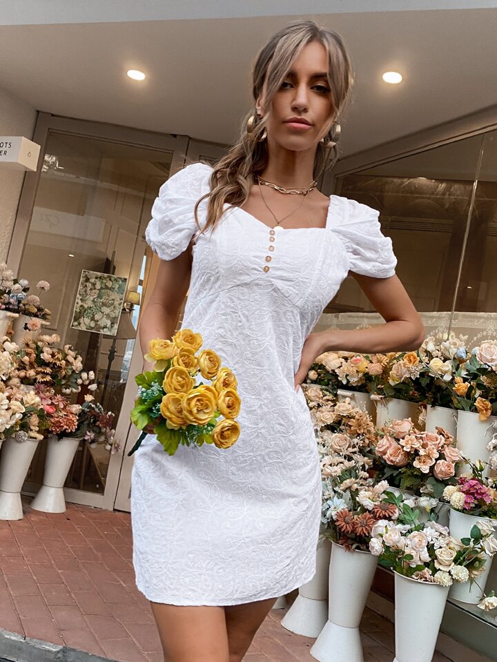 فستان بخصر عالي بلون موحد باكمام منفوخ