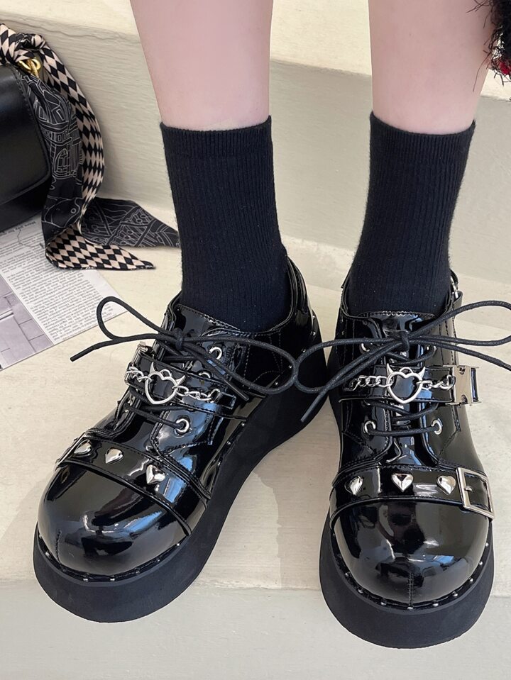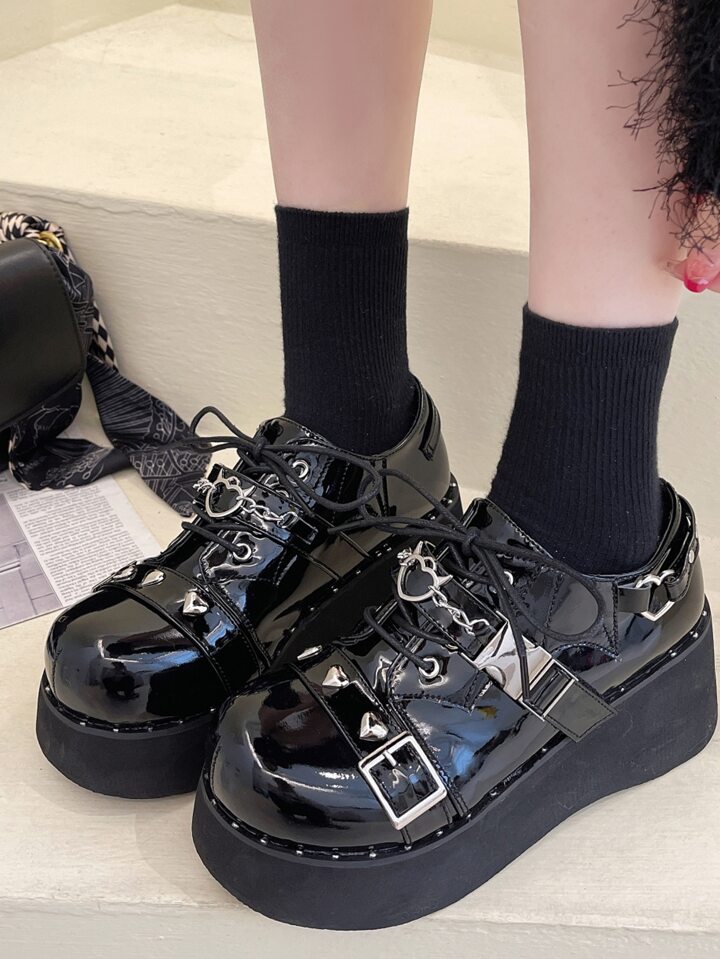 البونك حذاء الى سلسلة و بديكور مشبك نعل سميك اسفين حذاء