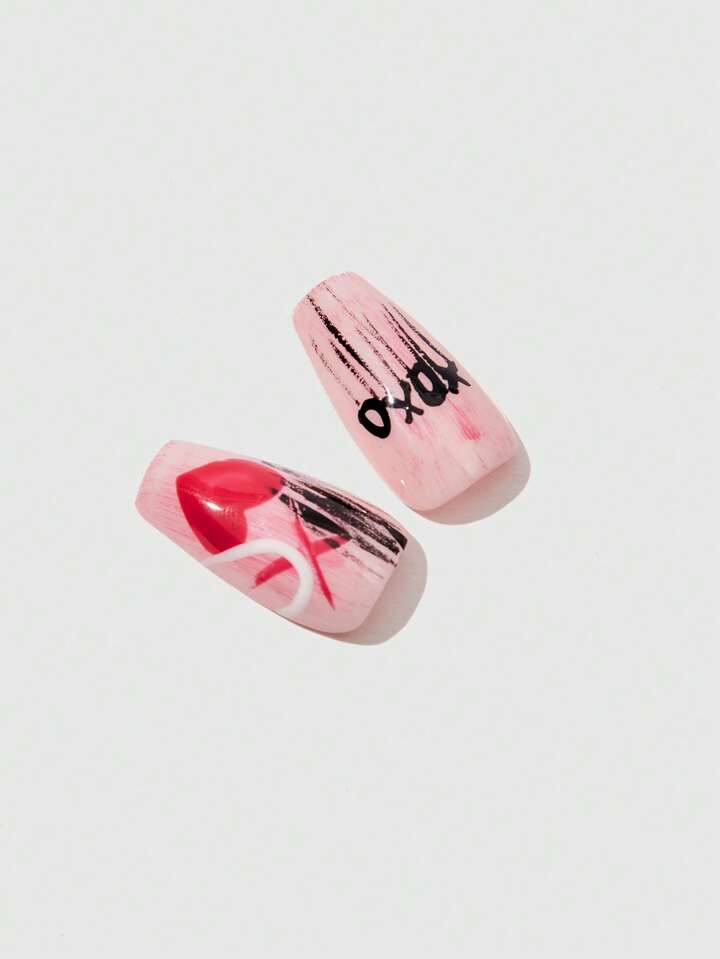 ROMWE Avant 10 قطع طويل نعش قلب & نمط رسوم كارتون أظافر اصطناعية عدة