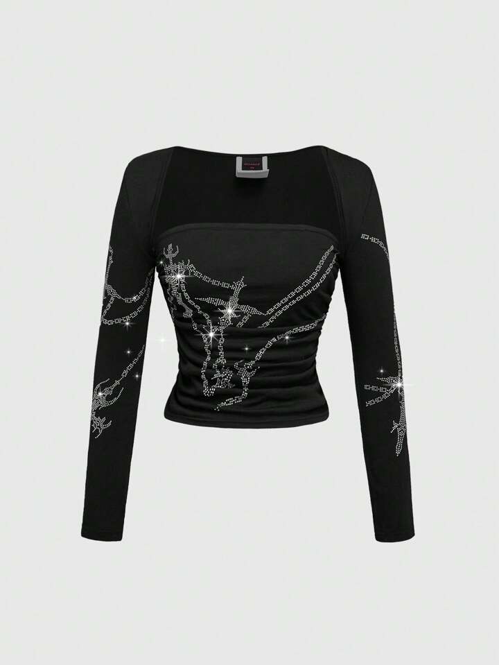 ROMWE Avant مجموعة من 2 قطع كارديجان قصير مرصع بالراين وأعلى أنبوبي للنساء رقم 2000