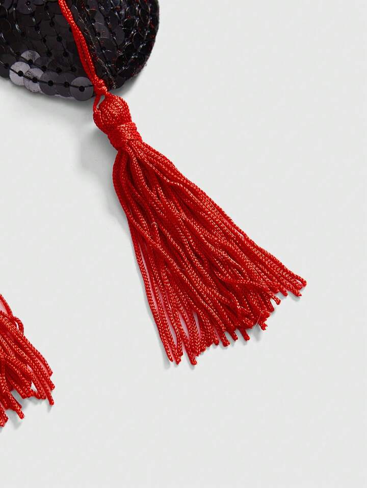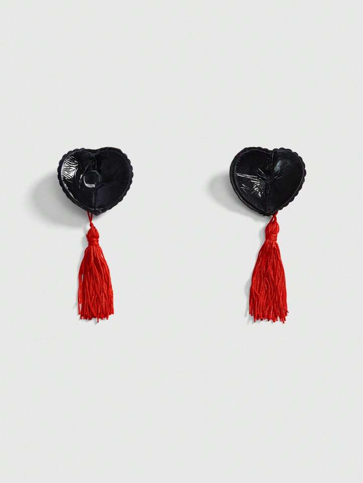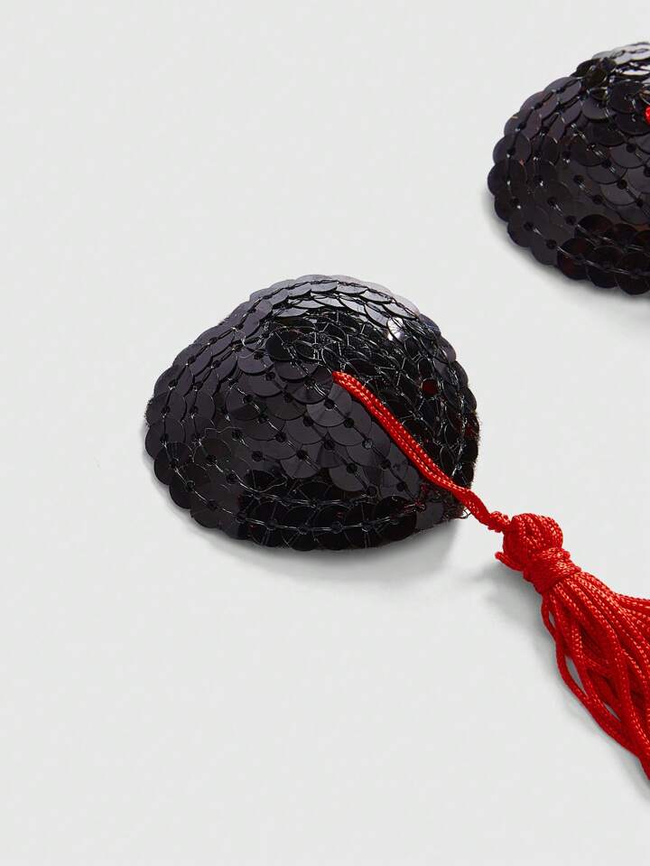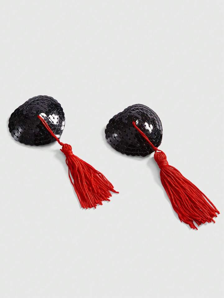 ROMWE Avant غطاء الحلمات المرصع بالترتر والبرق على شكل قلب مع الشراريب لحفلات الكرنفال والمهرجانات، زوج واحد