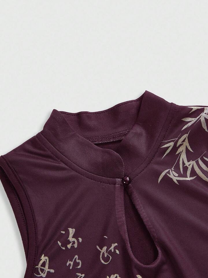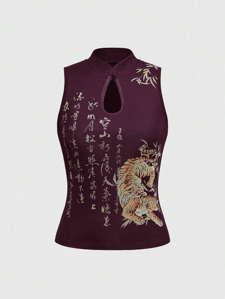 ROMWE Avant ملابس علوية أنثوي بطبعة خط الكتابة الصيني بتصميم النمر والأوراق الخضراء