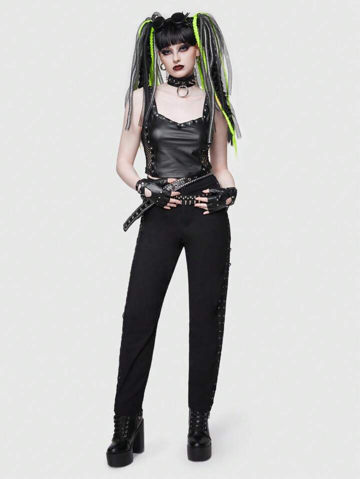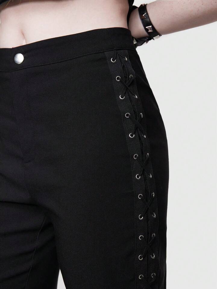 ROMWE Avant بنطلون طويل بخصر عالي وحزام عابر