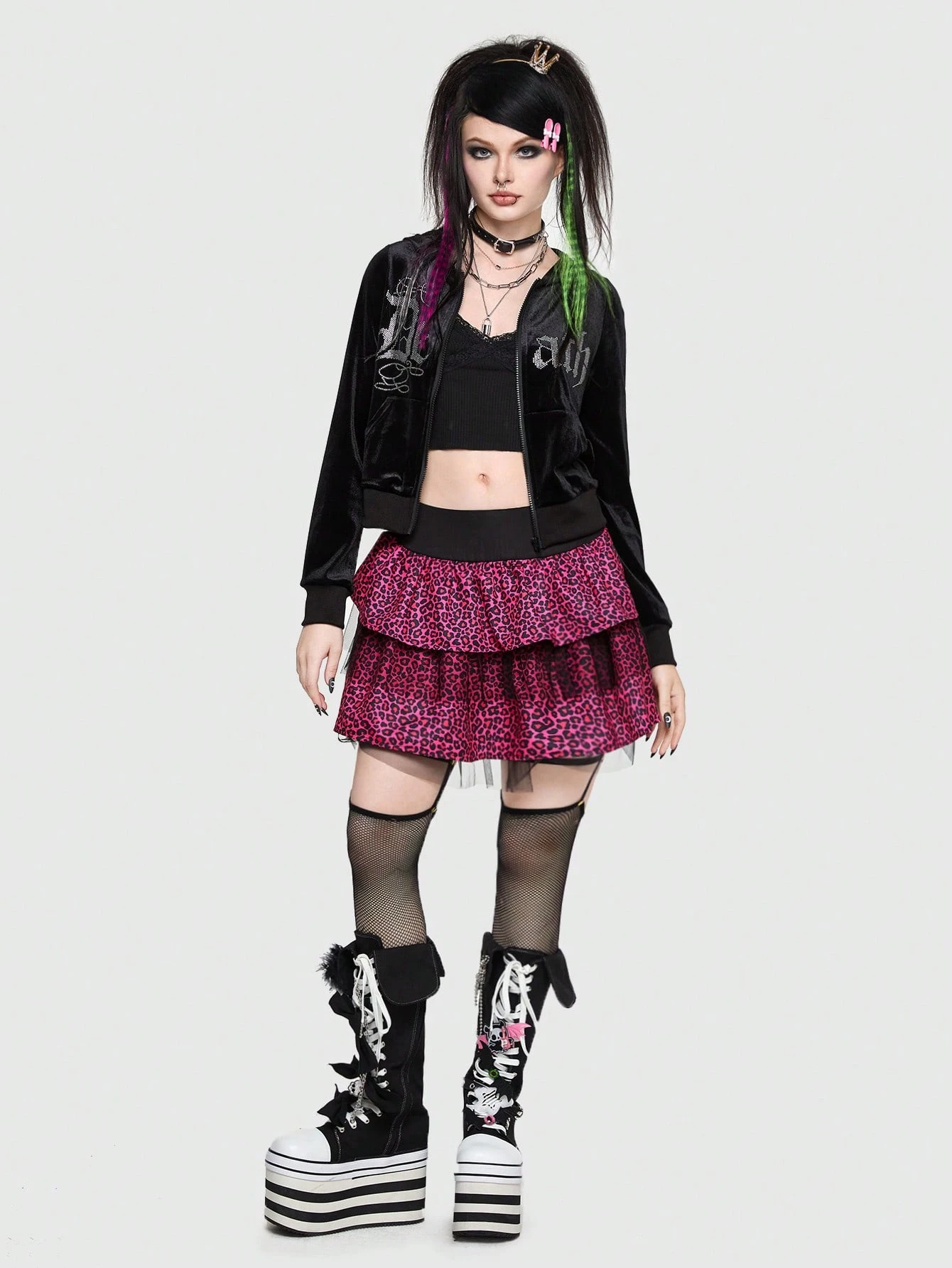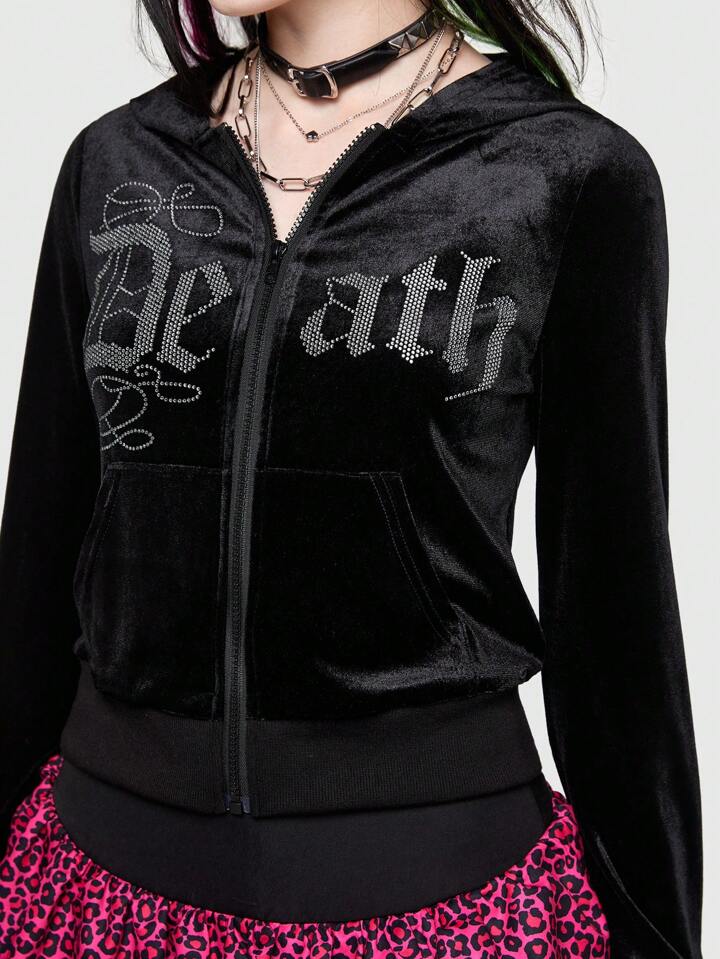 ROMWE Avant جاكيت حرف بديكور حجر الراين سستة مخملي